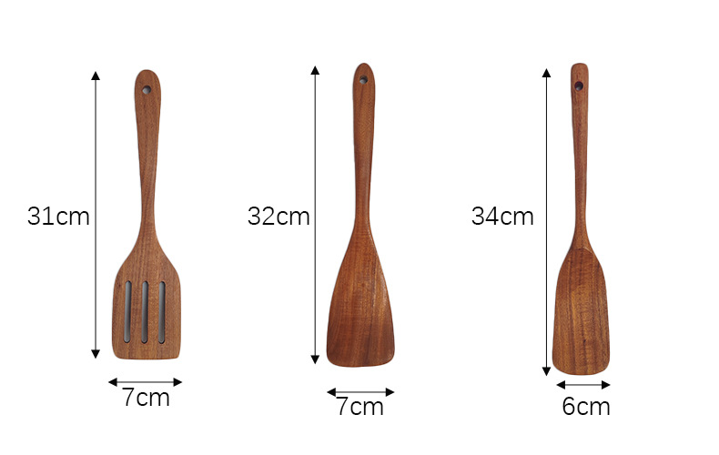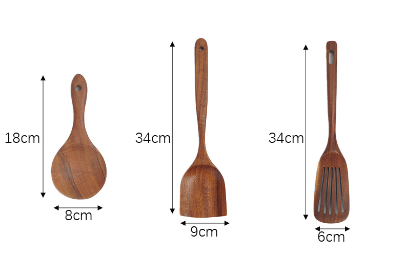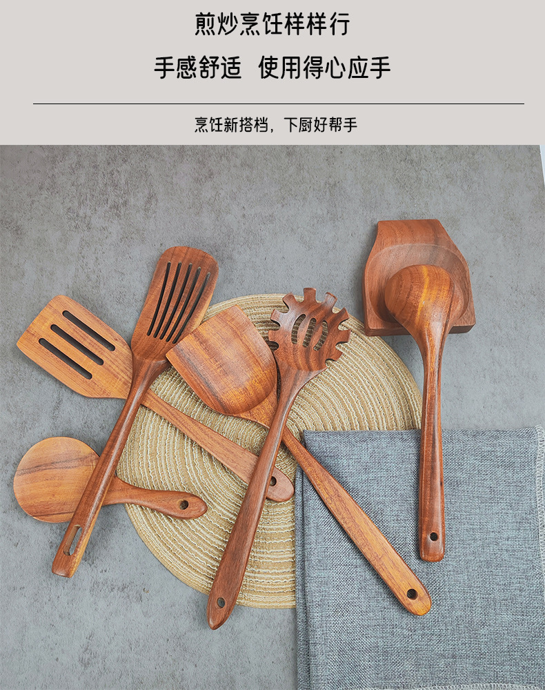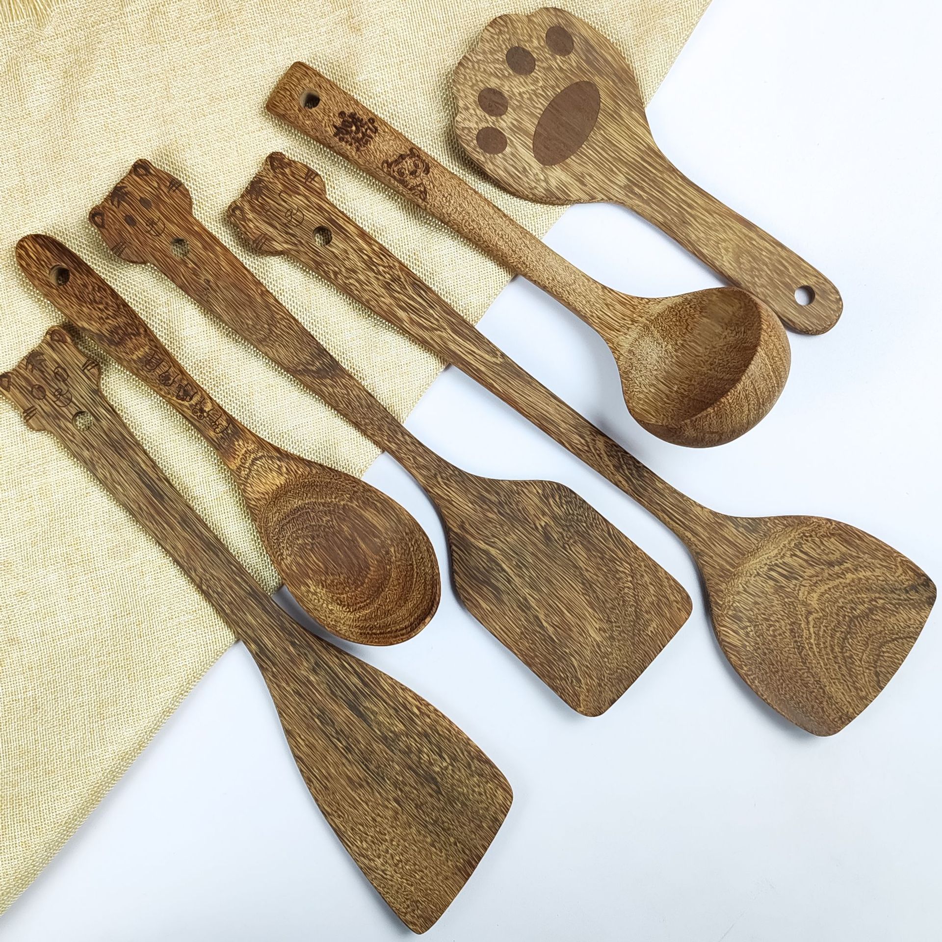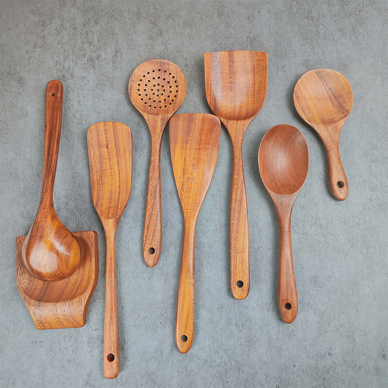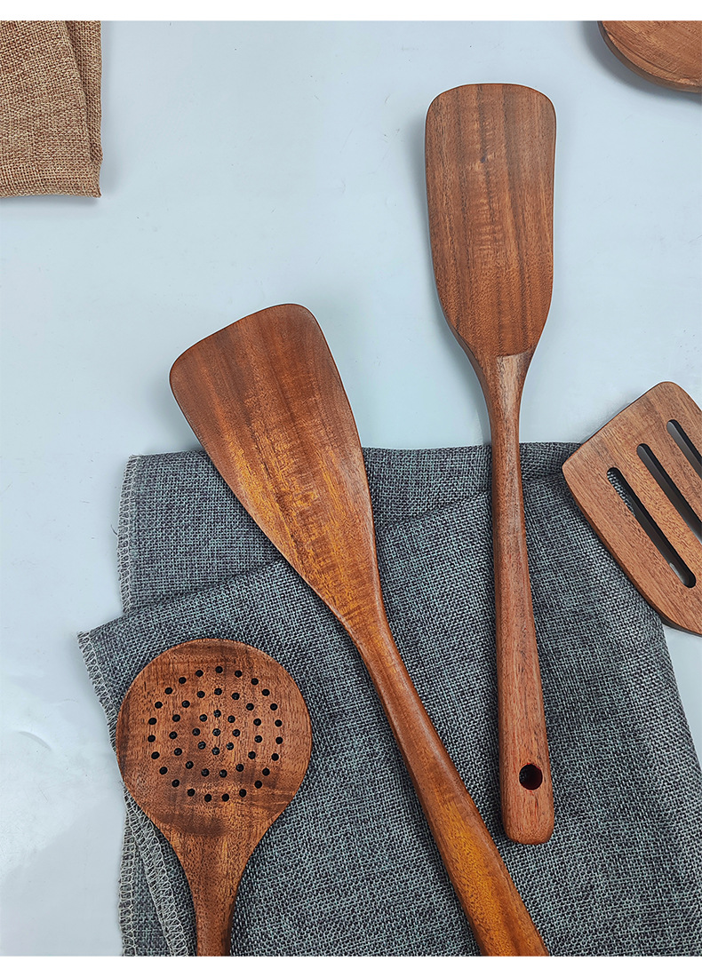アカシア木製スパチュラとスプーンの7点セット、焦げ付き防止木製スパチュラとライススプーンセット、家庭用キッチン用品と食器、ロゴが刻印可能