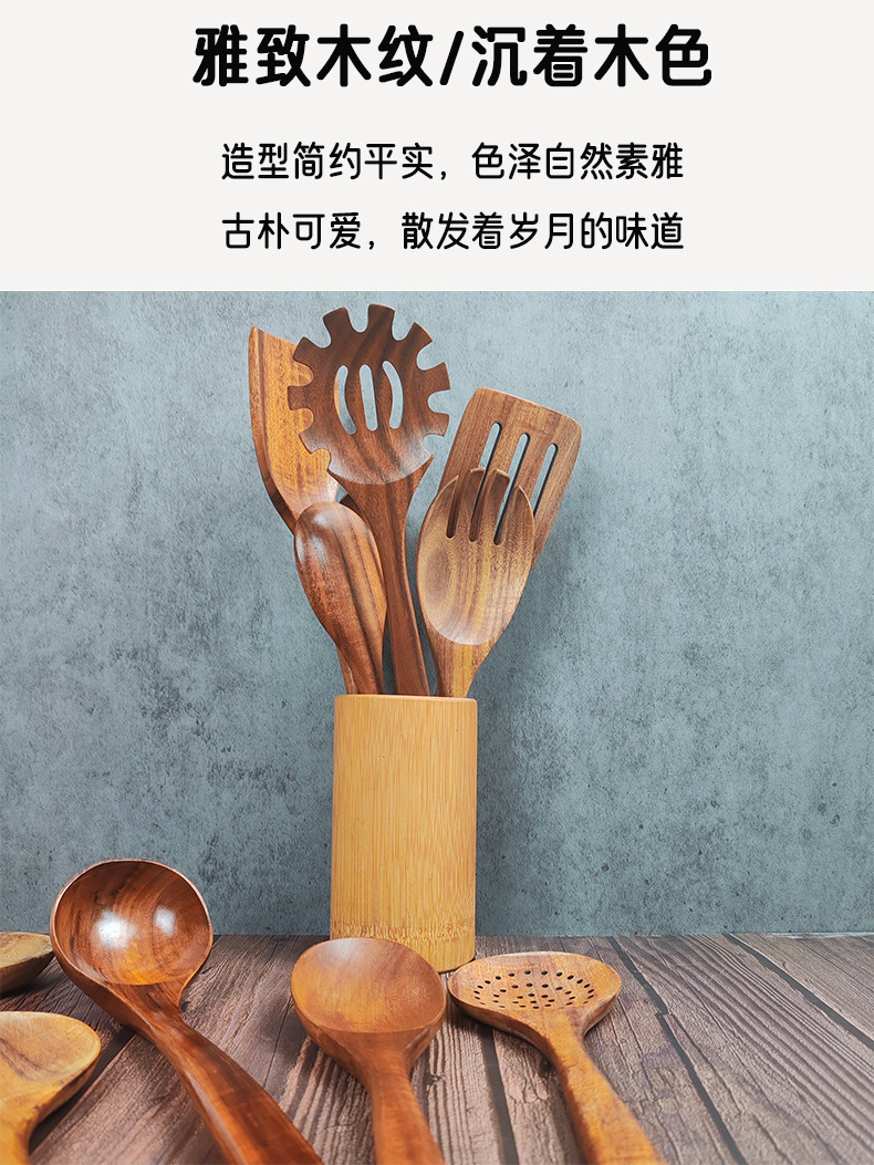 メーカー直接供給ブナ材スパチュラスープスプーン木製キッチン用品高温耐性滑り止め抗火傷木製スパチュラログカラーキッチン用品セット
