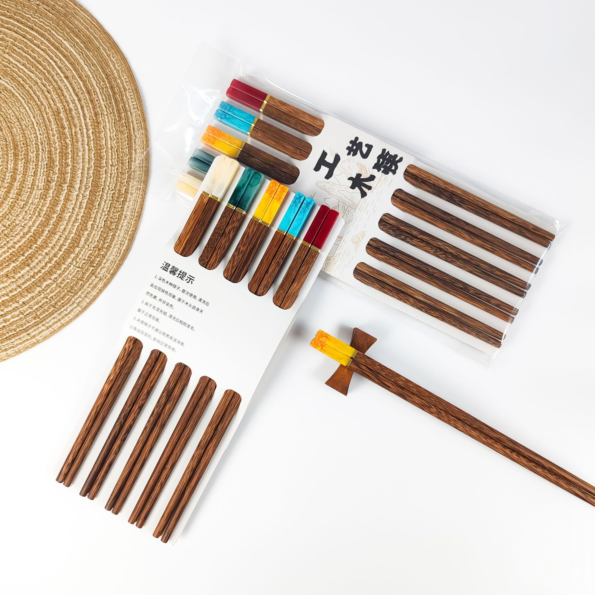 家庭用箸5膳、紫檀食器、1人1膳、業務用配送、江湖用品工場卸売