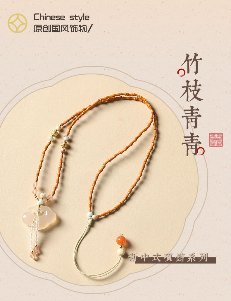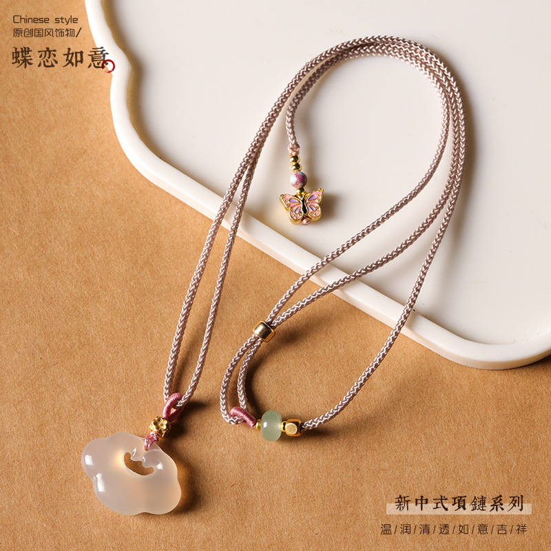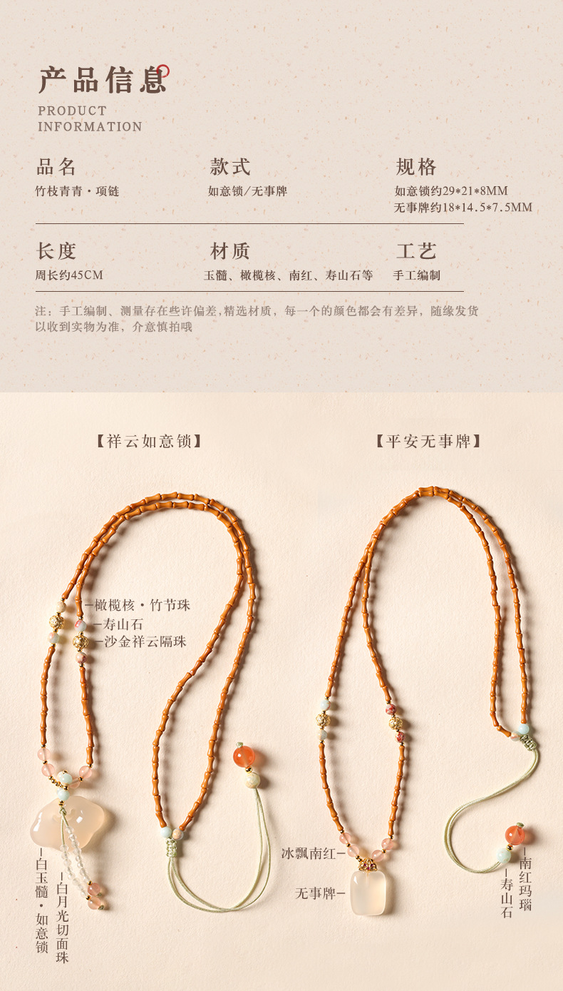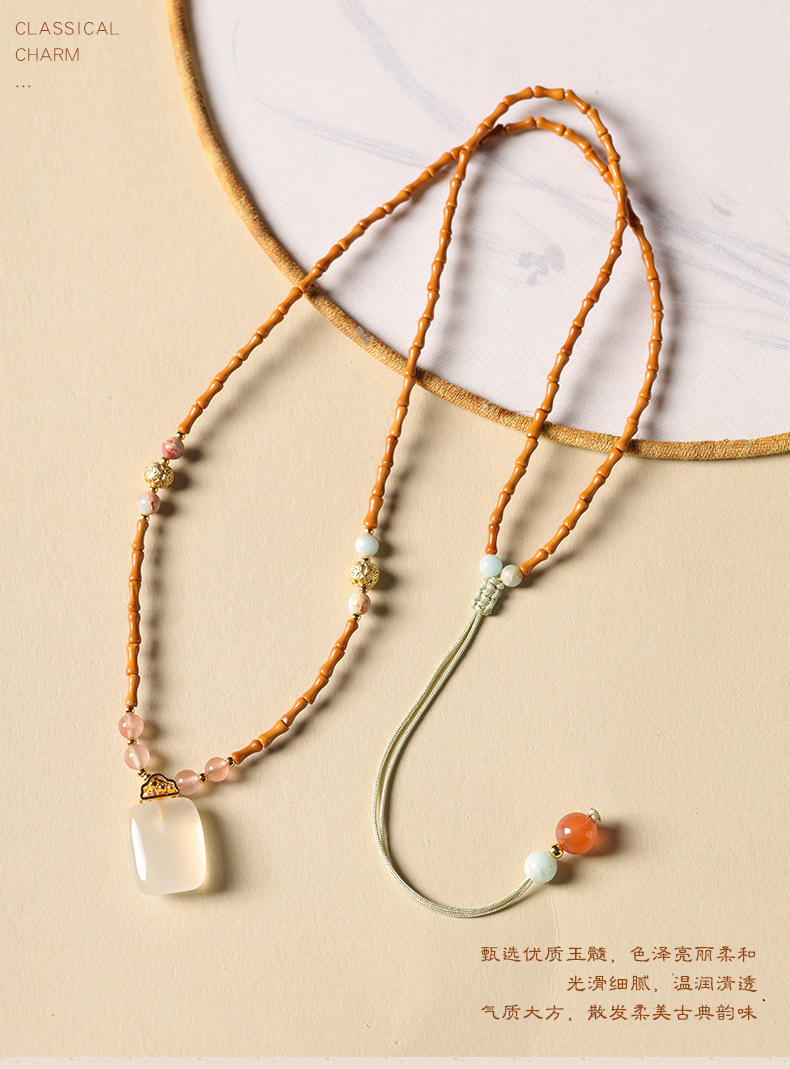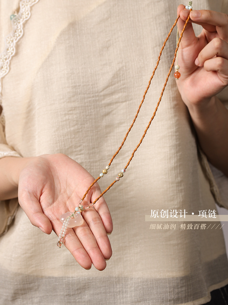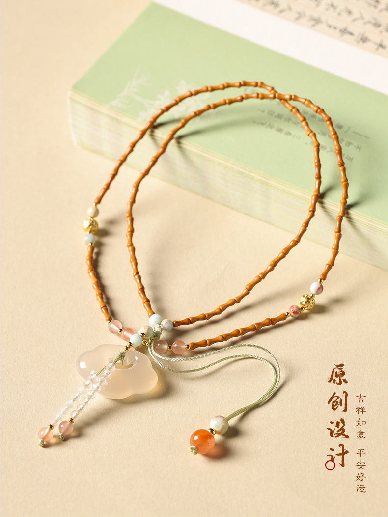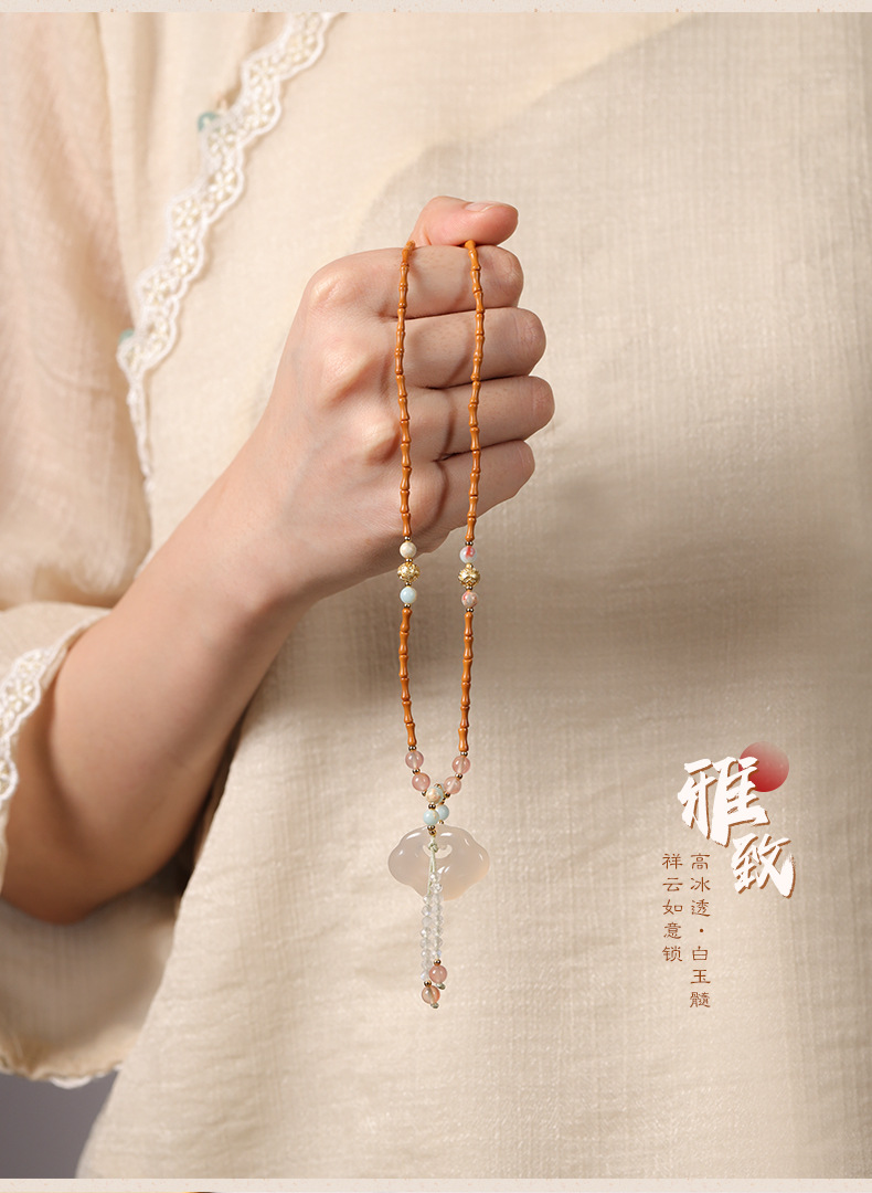 白瑪瑙祥雲如意錠ペンダント吉祥平安錠玉髄オリーブ核竹節新中国式鎖骨チェーンネックレス