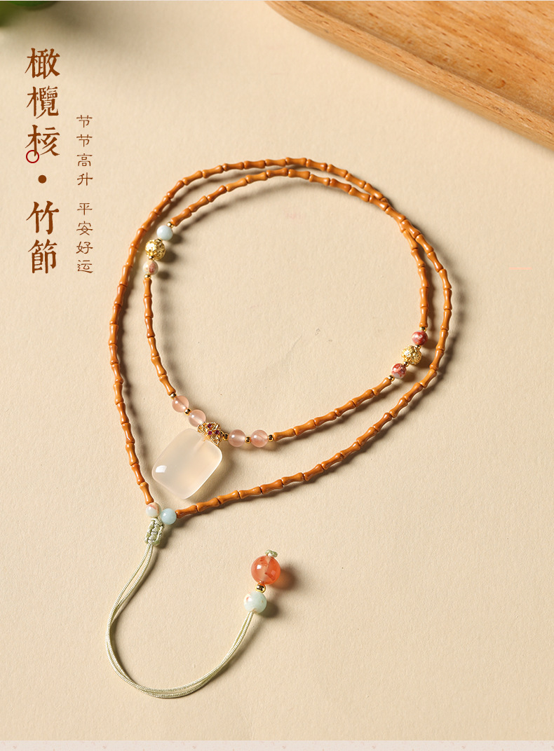 オリーブの核の小さい竹の節のネックレスのペンダントのチェーンの玉器の蜜のワックスのひものセーターのチェーンのネックレスのひもの携帯電話のひも