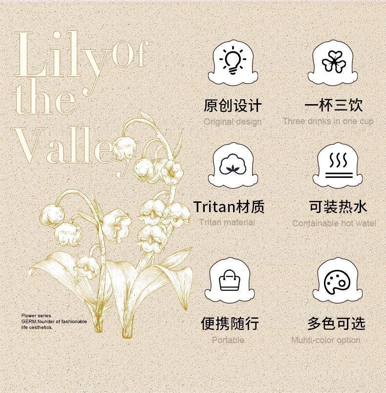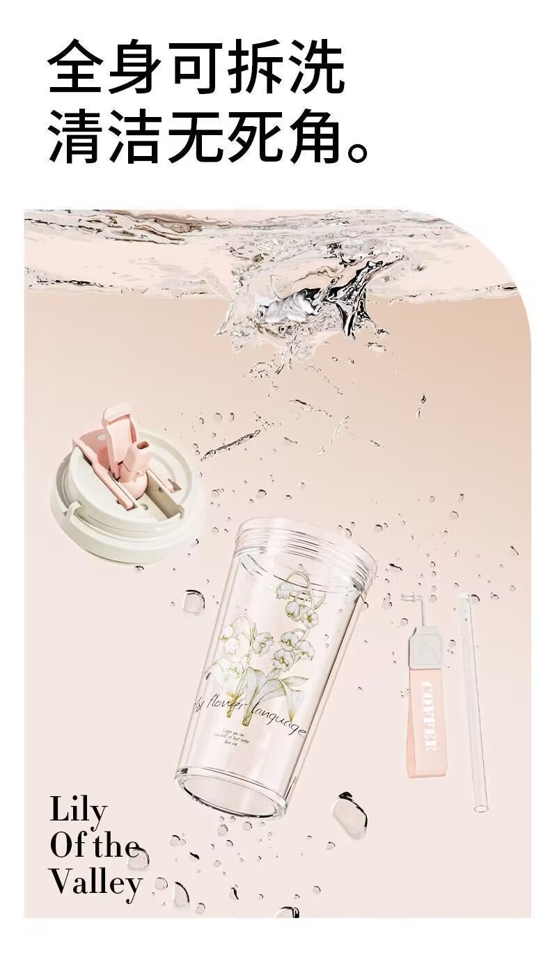 スズラン ウォーターカップ 女の子用ストロー ダブルドリンク プラスチックカップ