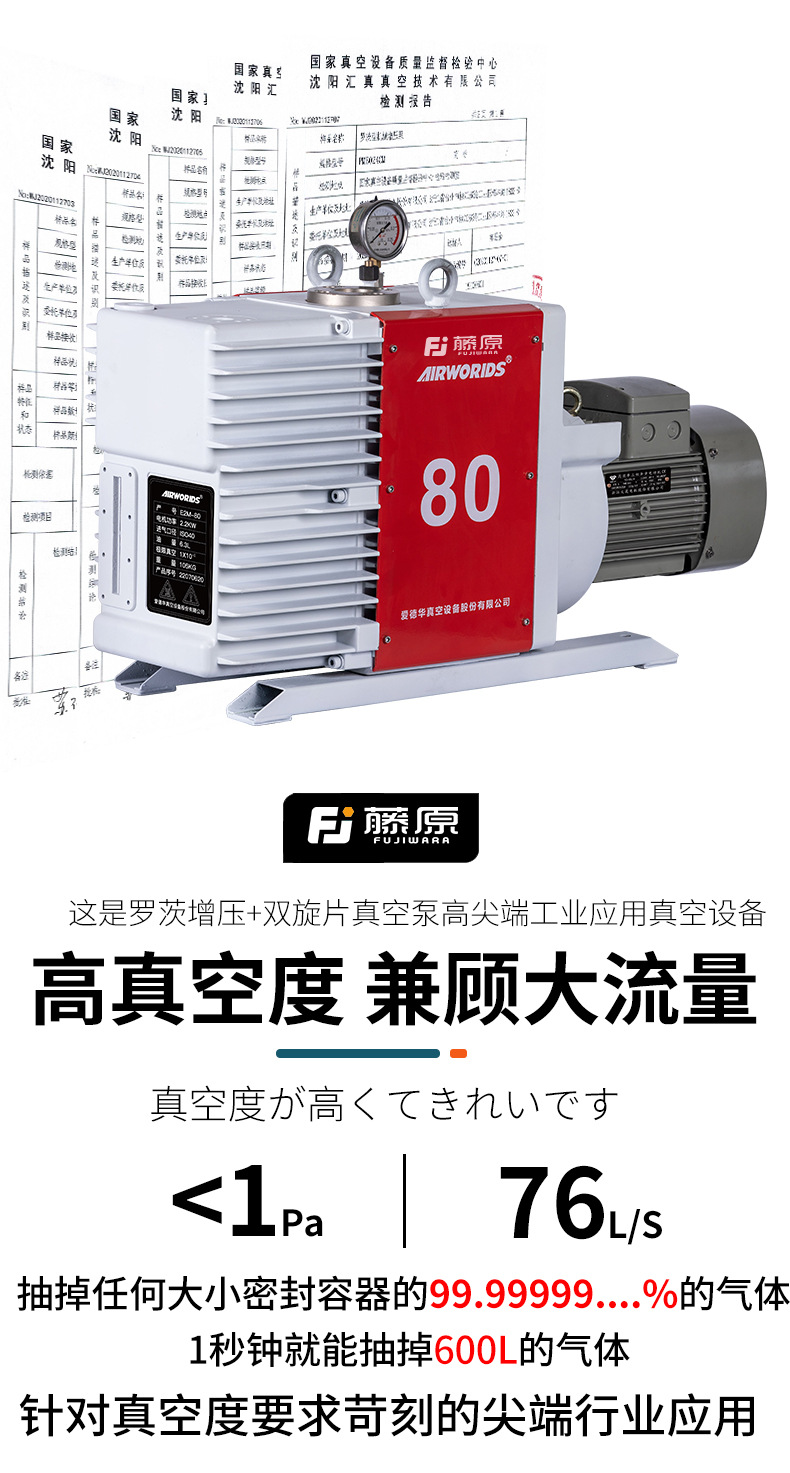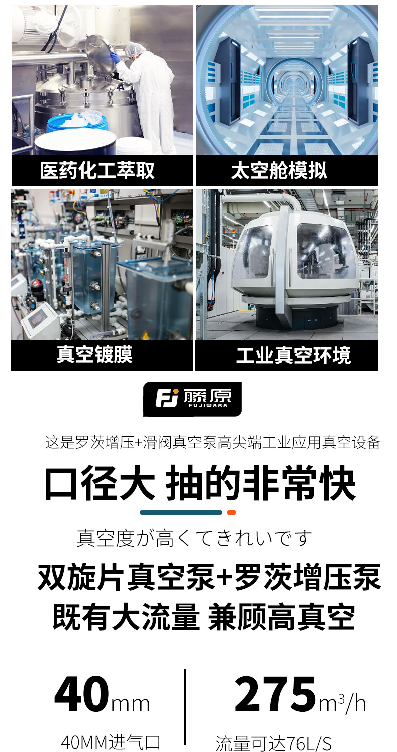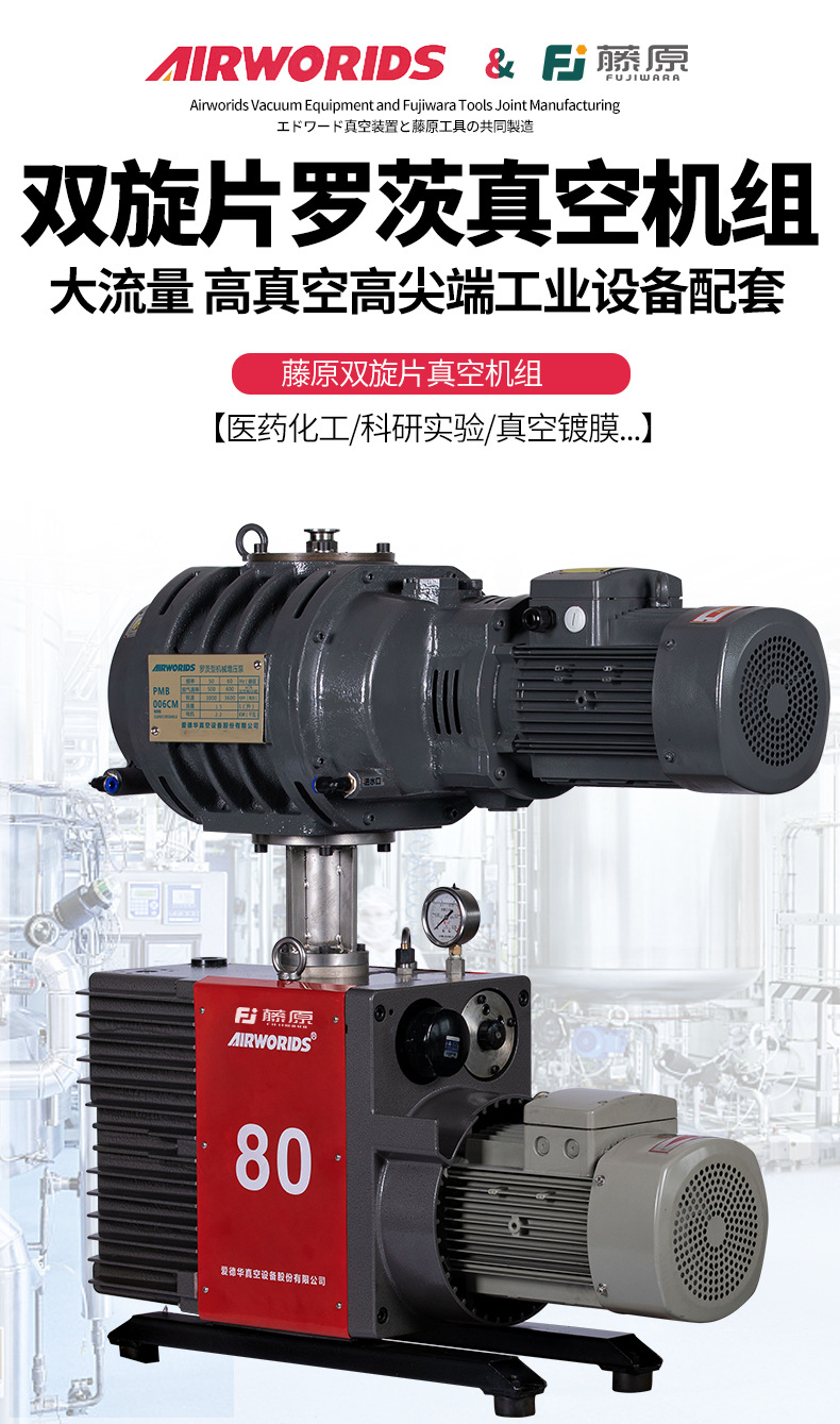 藤原二段回転真空ポンプ大流量工業級エドワードローツポンプ実験コーティング真空ポンプユニット