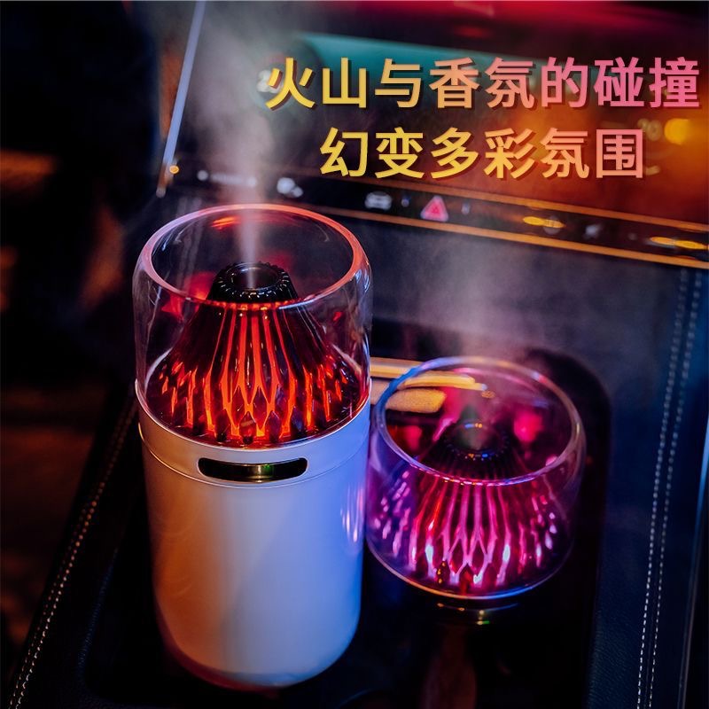 新款仿真火山香薰机家用扩香仪车载七彩火山加湿器便携车载加湿器