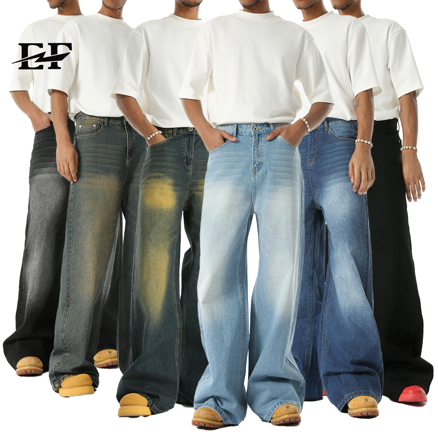 EFジーンズ | 新作アメリカンストレートワイドレッグフロアレングスホワイトウォッシュルーズジーンズ9色多用途