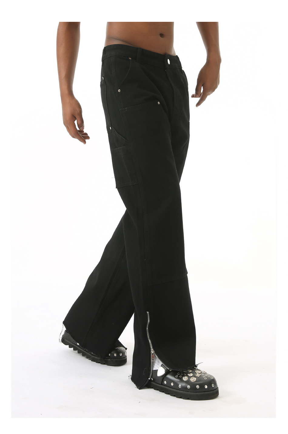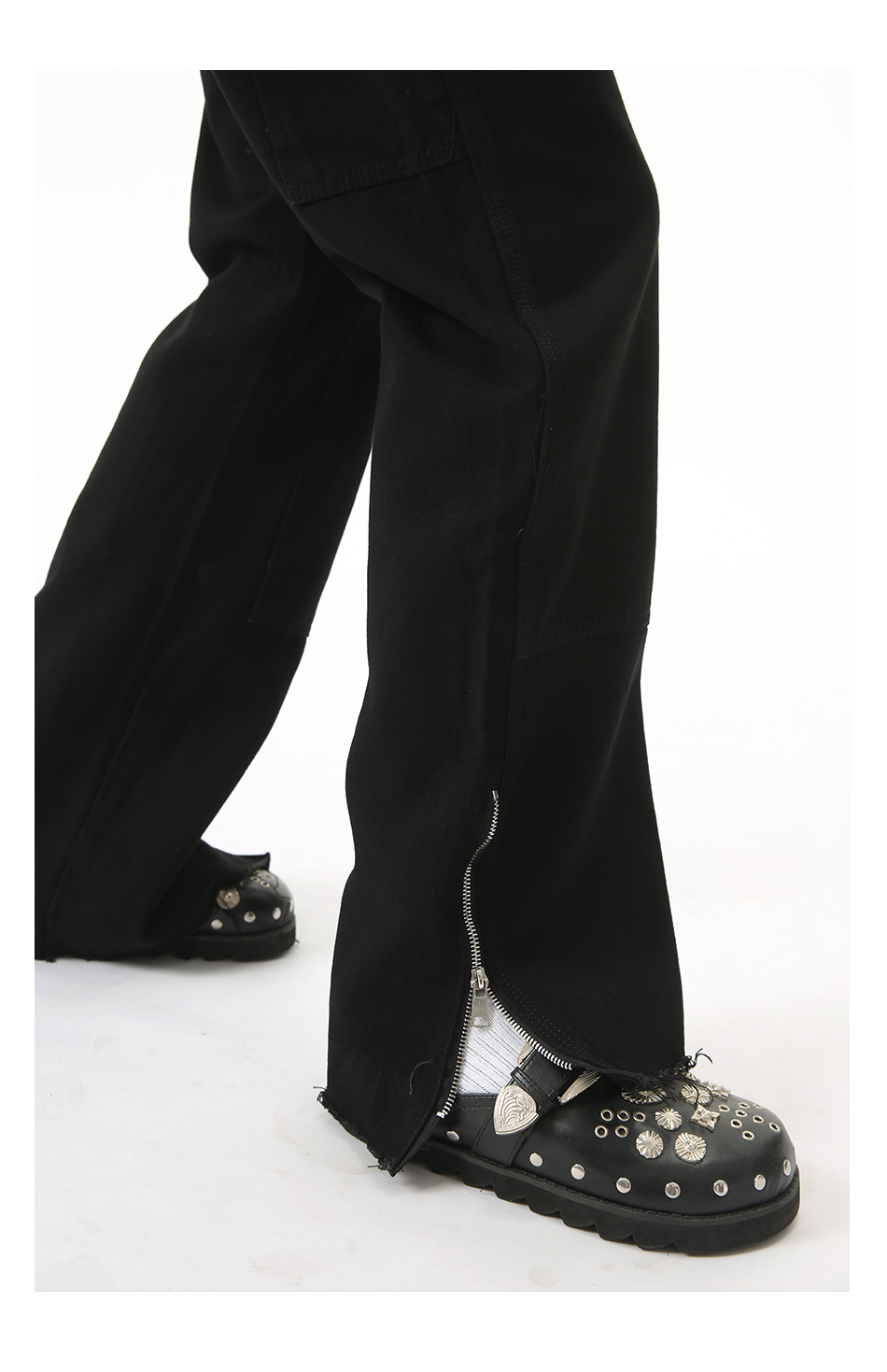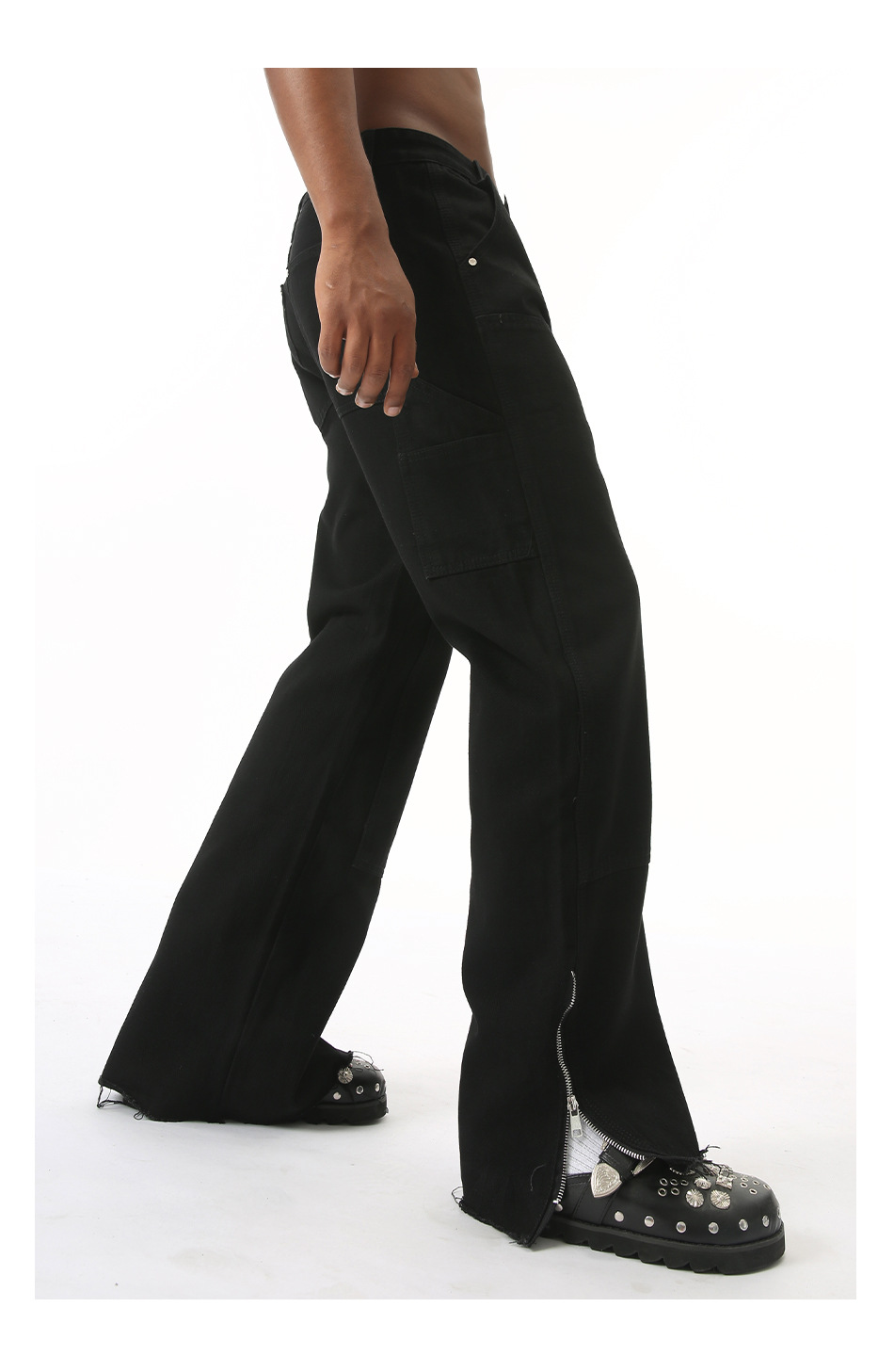EFジーンズ | 四季対応の新作、ハイストリートスタイルのローエッジサイドジッパーデザインのマイクロフレアワイドレッグジーンズ