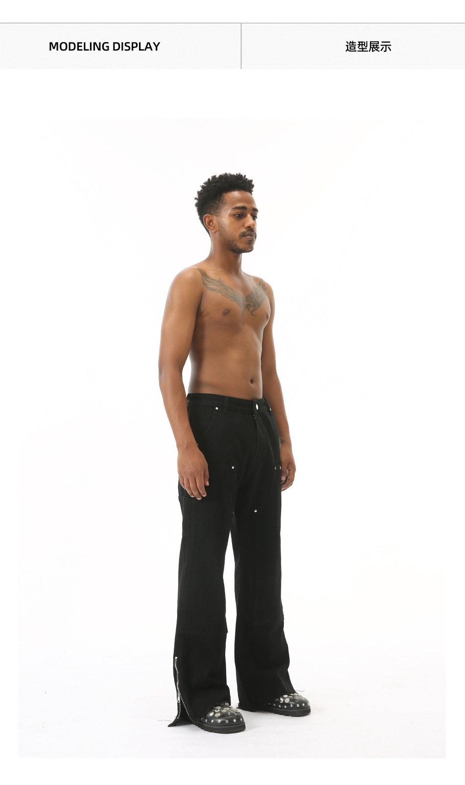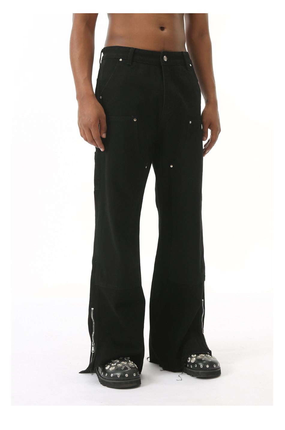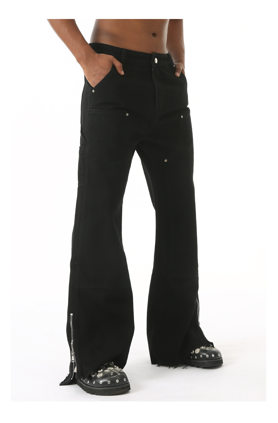 EFジーンズ | 四季対応の新作、ハイストリートスタイルのローエッジサイドジッパーデザインのマイクロフレアワイドレッグジーンズ