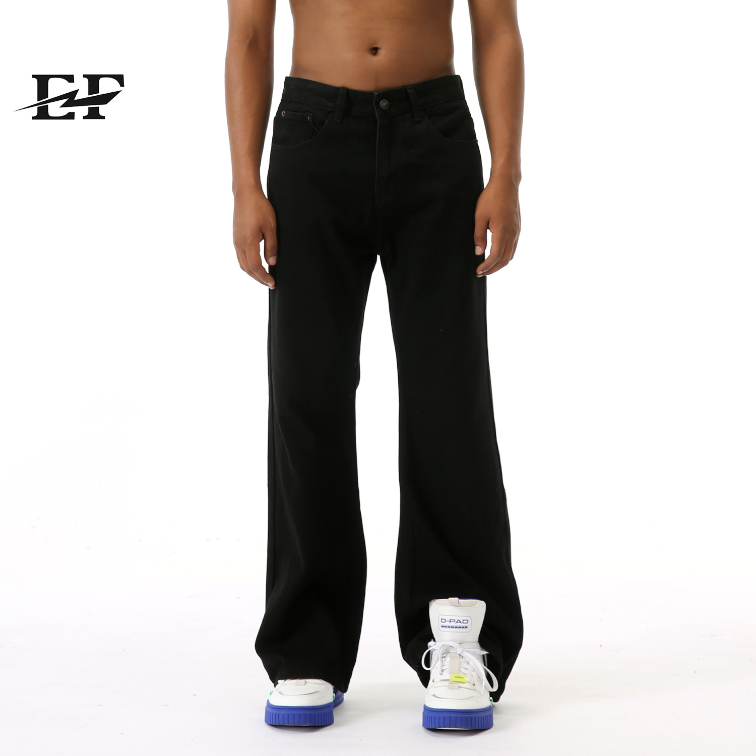 EFジーンズ | アメリカンスタイルのシンプルな無地の黒のウォッシュドデニムパンツ、ストレートカジュアルパンツ