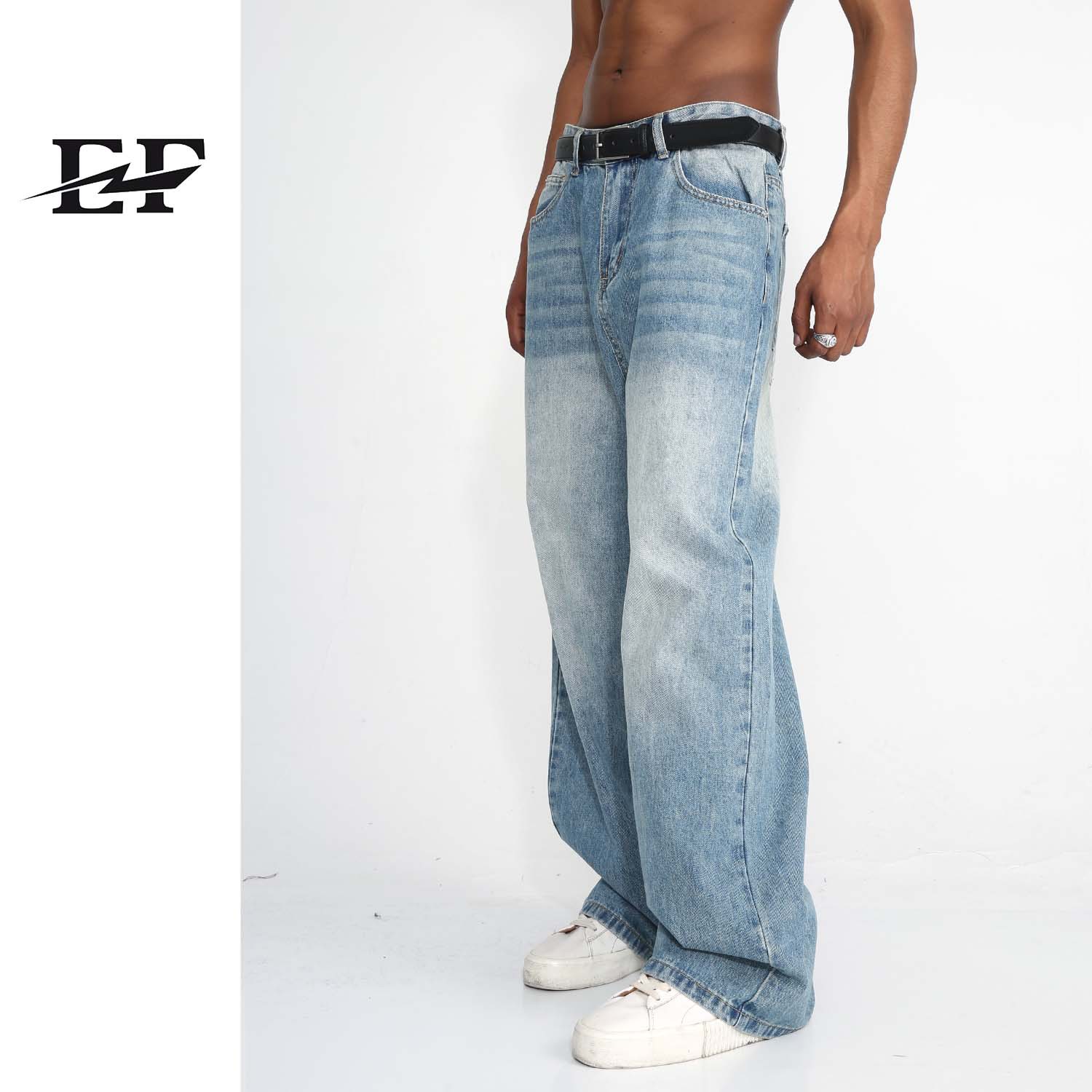 EF JEANS | 韓国版ルーズオールマッチエッセンシャルブルーストレートワイドレッグジーンズメンズカジュアル