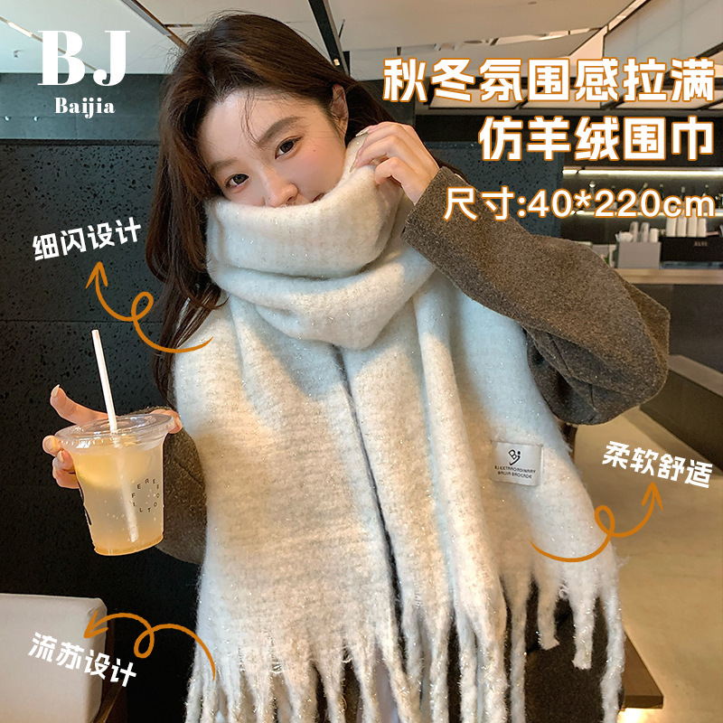 秋冬はカシミヤに似せて、マフラーの女性の高級感があります。
