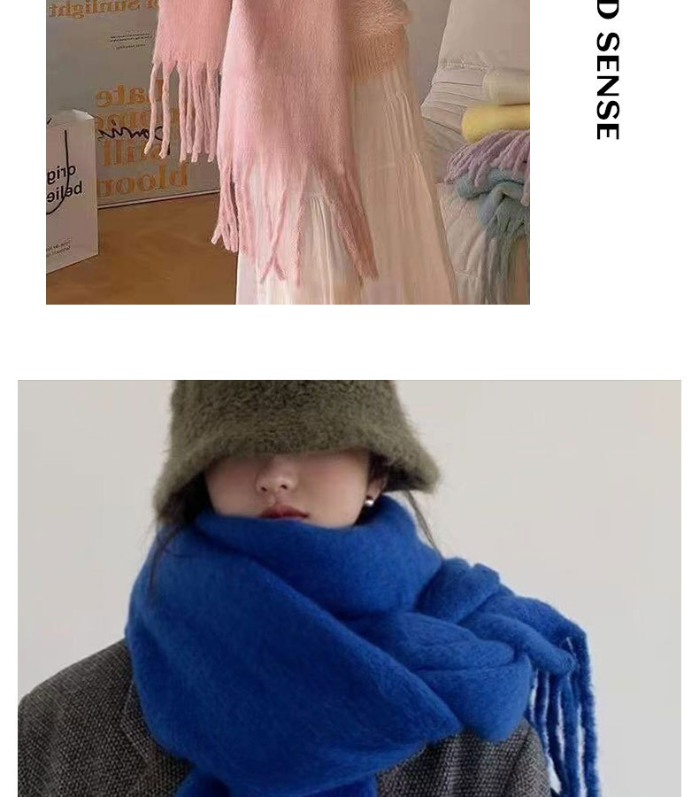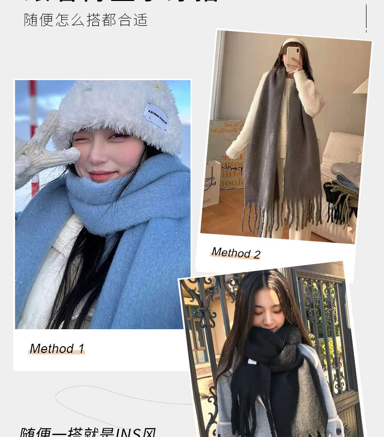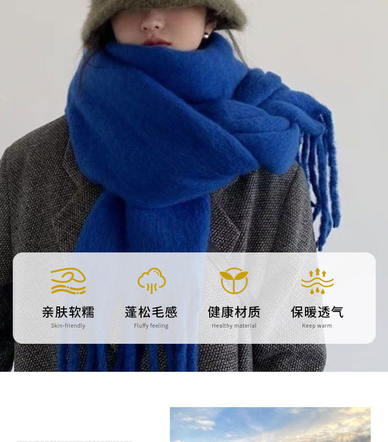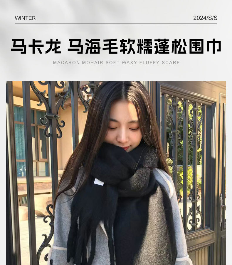 欧米のins秋冬はカシミヤのグラデーションのマフラーの女性の馬海毛の単色の保温のマフラーの高級感をまねます。