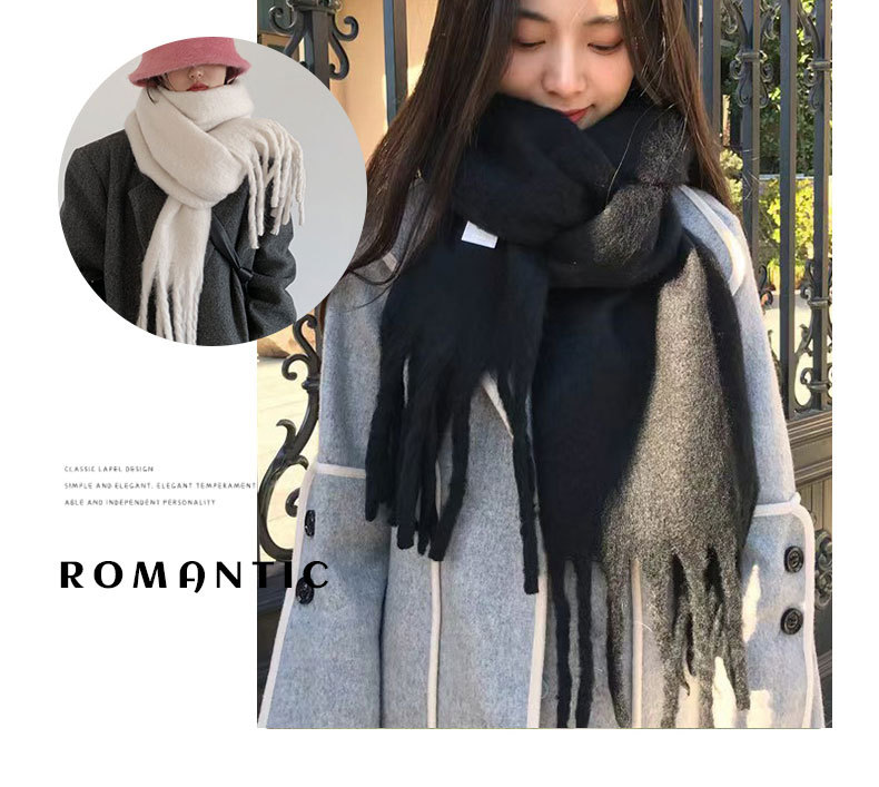 厚い白いマフラーはカシミヤのようです。冬は高級感があります。
