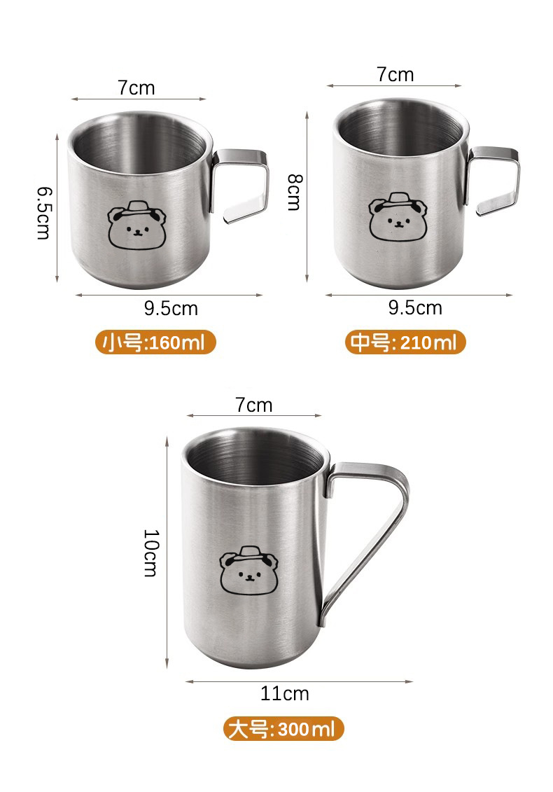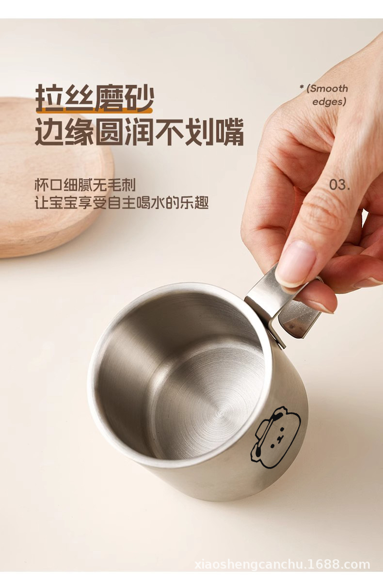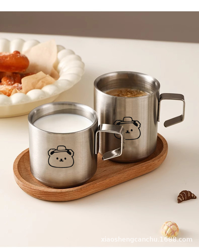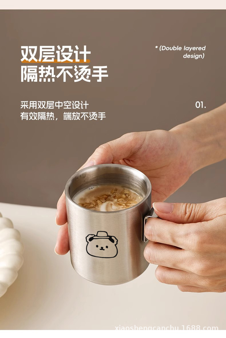 304ステンレス製ミルクカップクリエイティブ二層子供転倒防止カップハンドル付きオフィスコーヒーカップマグカップ