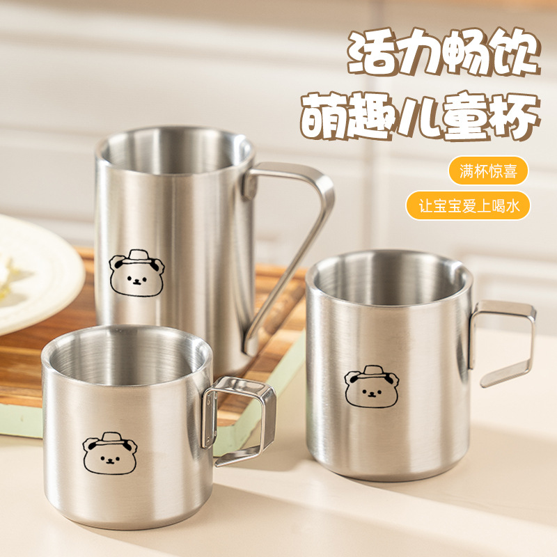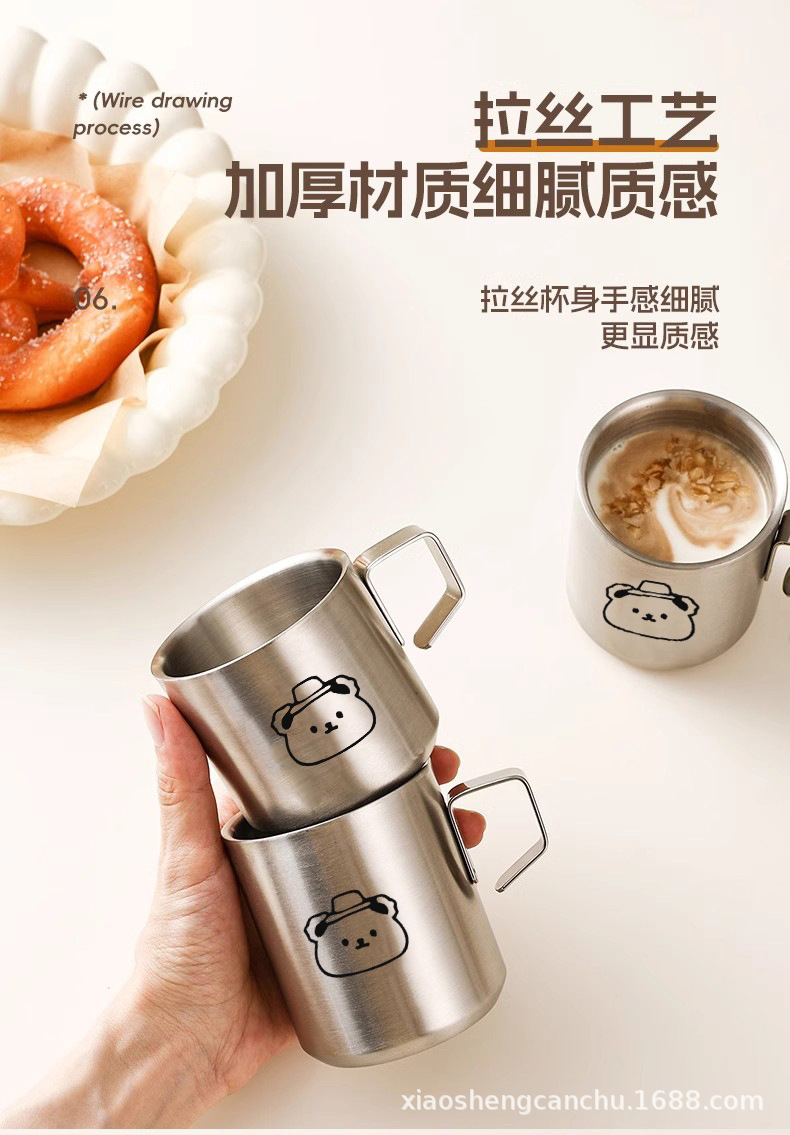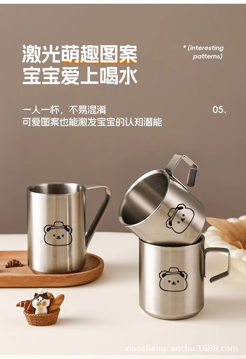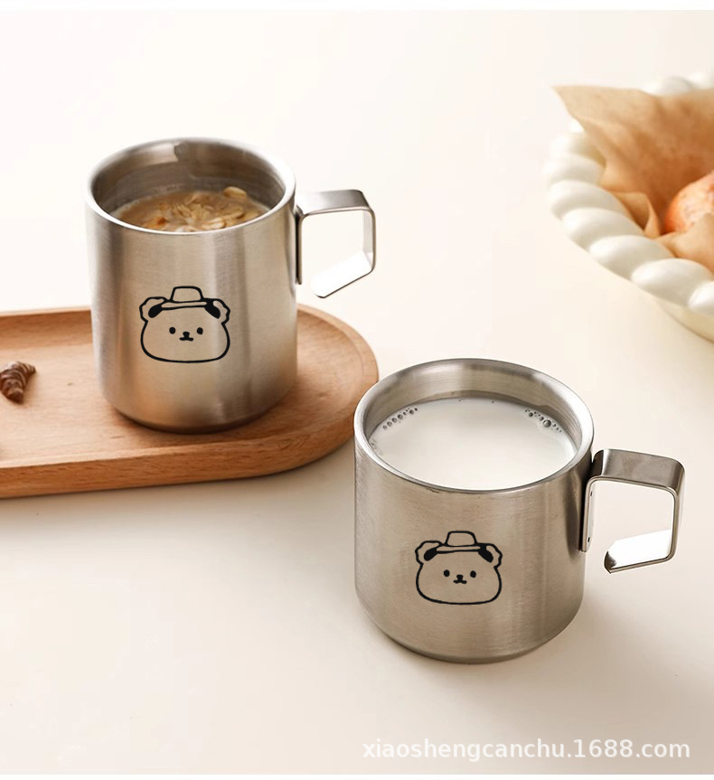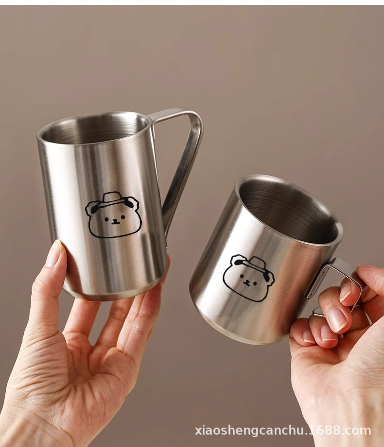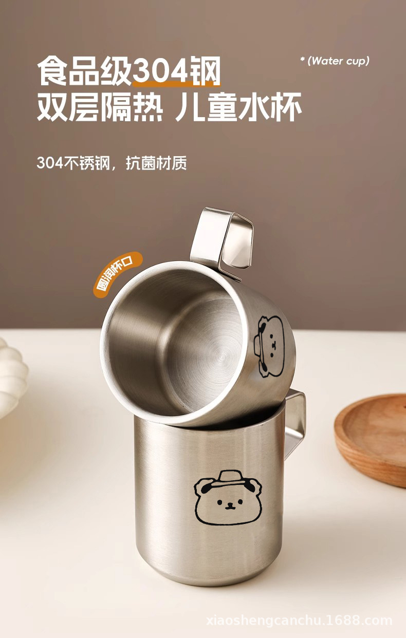 漫画304ステンレス鋼ミルクカップクリエイティブ二層子供転倒防止カップハンドル付きオフィスコーヒーカップ