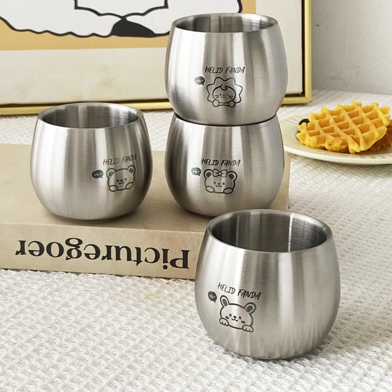 ステンレス製子供用ウォーターカップ、二重層断熱、火傷防止、幼稚園生専用ミルクカップ、厚みのあるカップ、かわいい