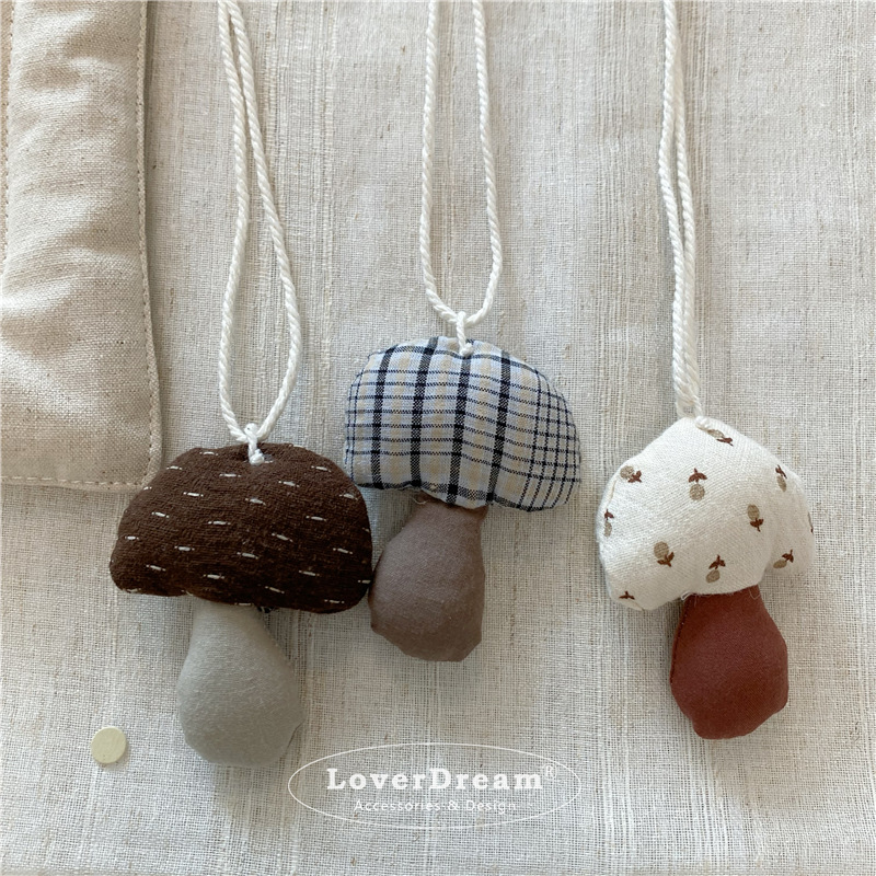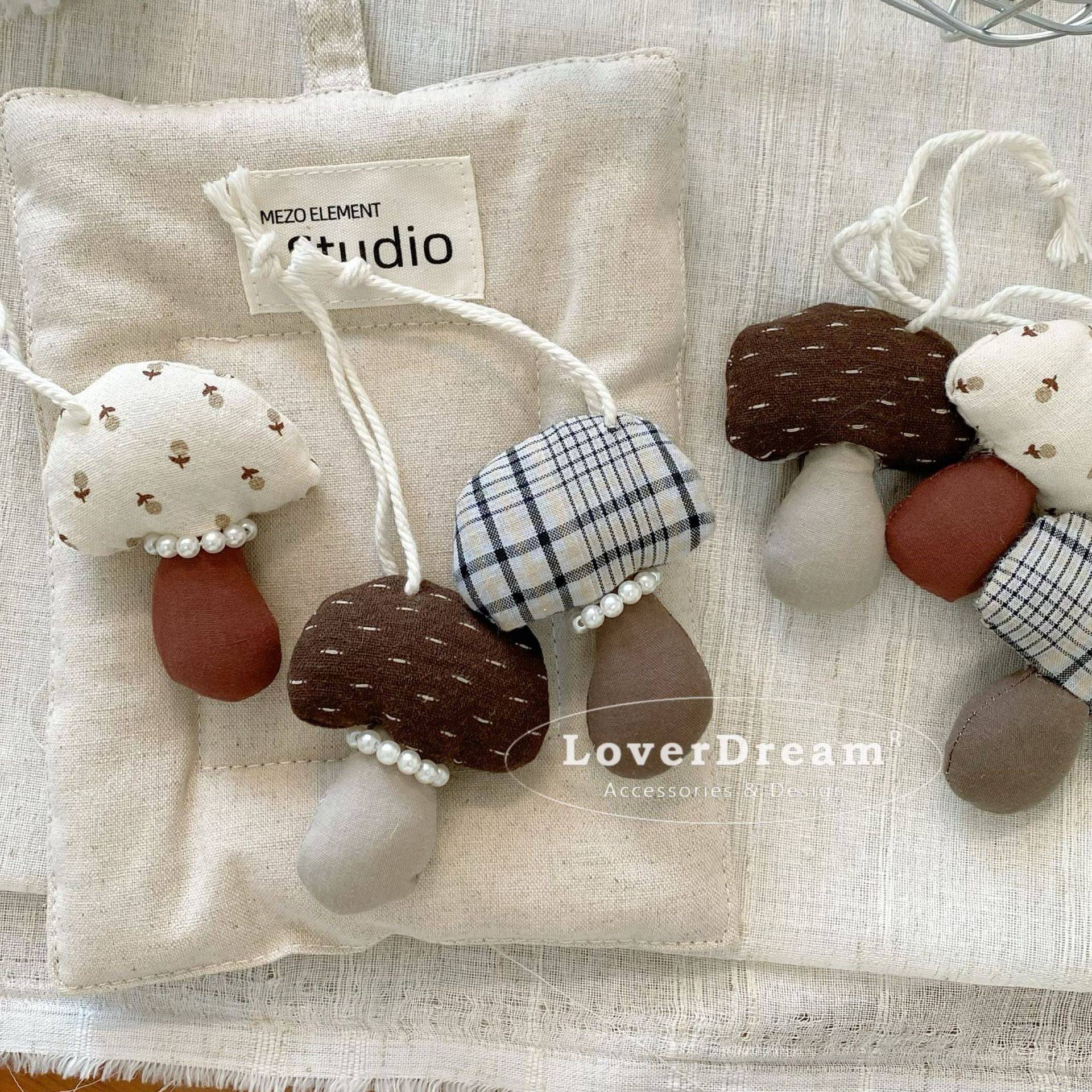 韓国の新しい質感の真珠の布芸のキノコの綿の麻は飾って甘くてかわいい車のキーホルダーを掛けます。