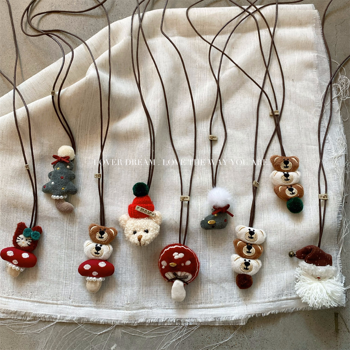 韓国の新しいアニメのぬいぐるみの熊のキノコは皮のネックレスの甘いクリスマスの祝日の雰囲気をまねることができます。
