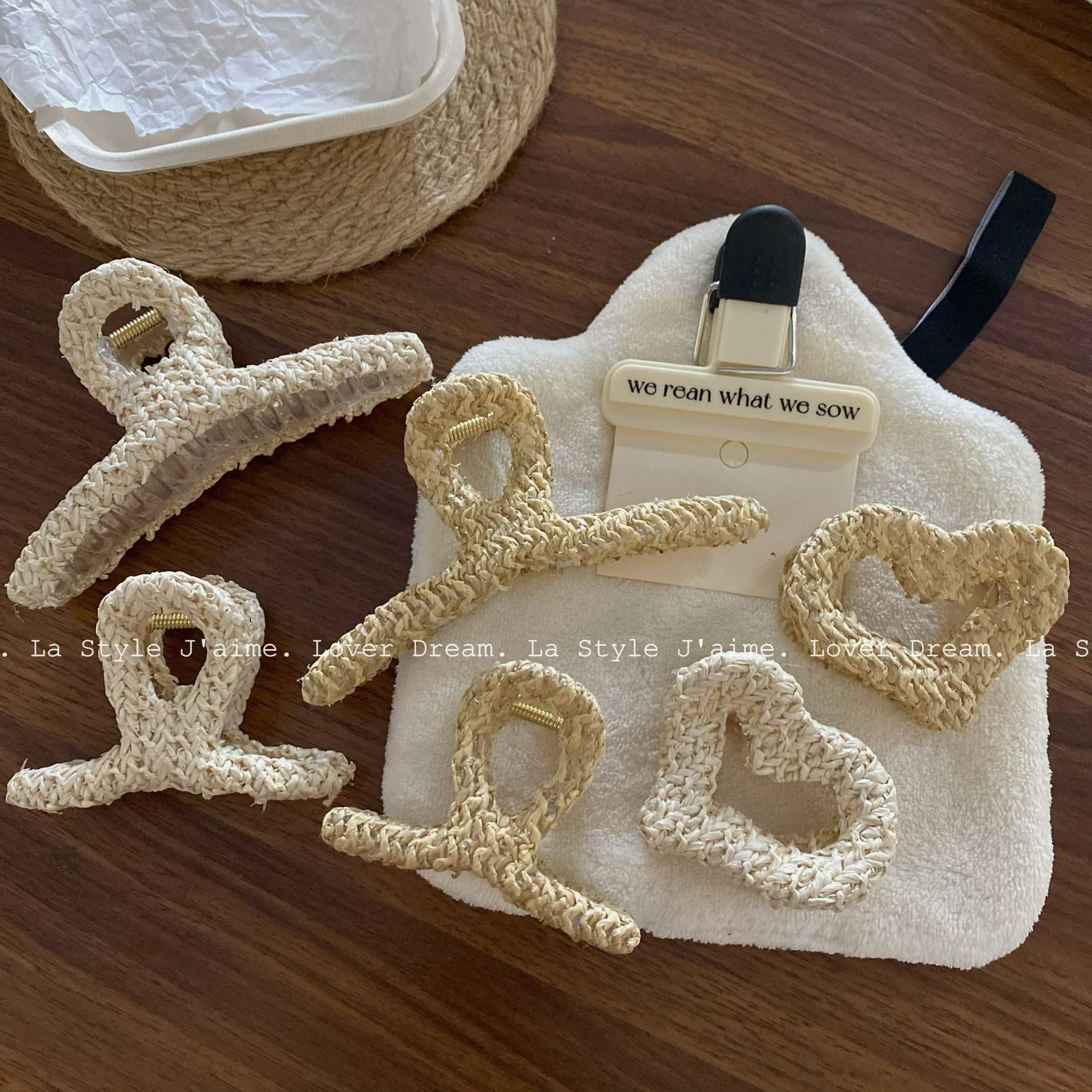 夏のins風の新型藤編みの愛のクロスヘアは韓国版の甘いファッションを挟みます。