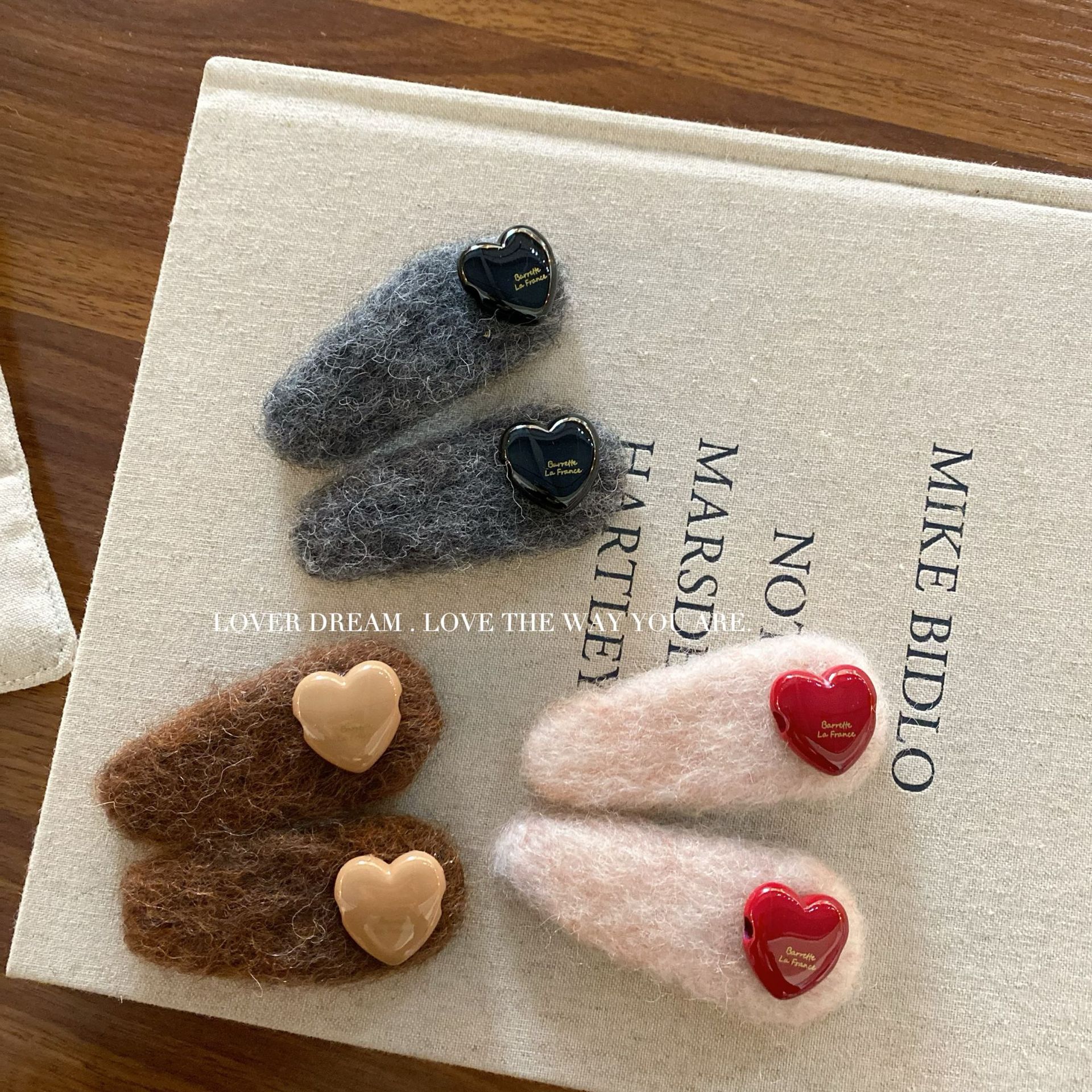 韓国insネットレッドと同じ新年の赤い愛フェルトのぬいぐるみがかわいい前髪を挟んで髪飾りを飾っている女性