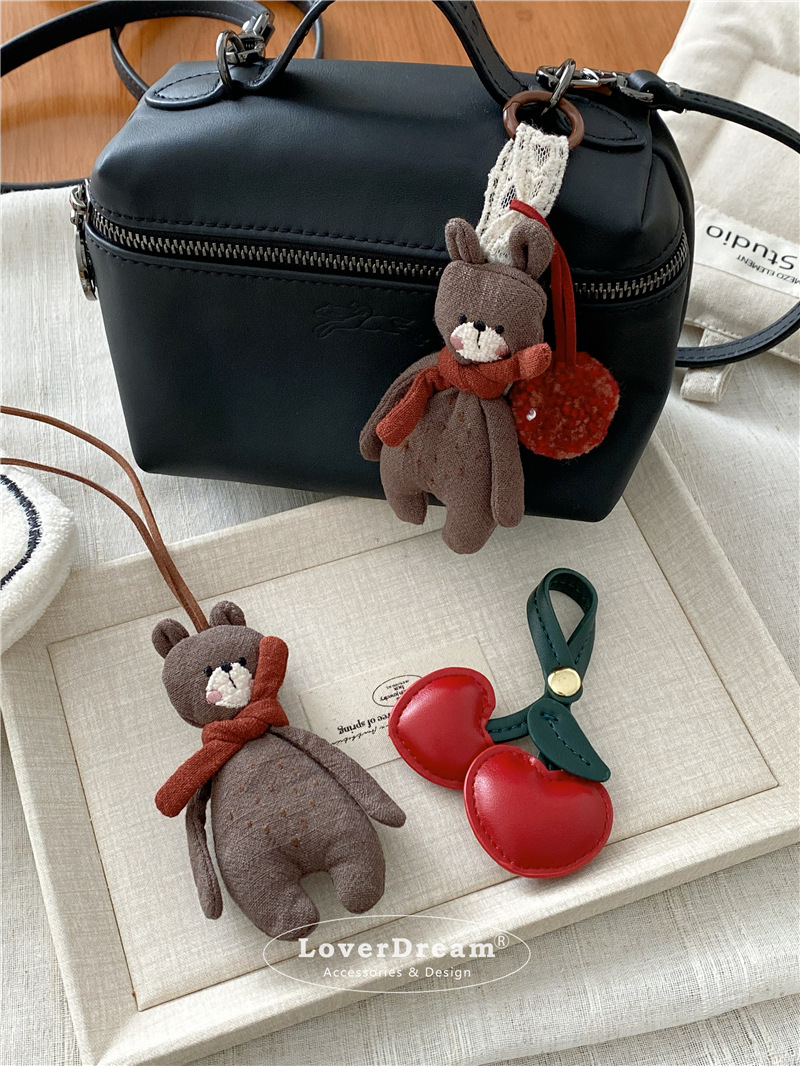 韓国の新型の質感の布芸の熊の白鳥の子犬のさくらんぼは飾って甘くてかわいいキーホルダーを掛けます。