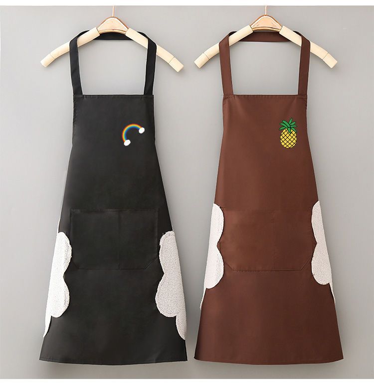 メーカーはプリントロゴエプロンガーランドウサギ手拭き女性キッチン防水耐油エプロンファッション韓国版カップルをサポートしています