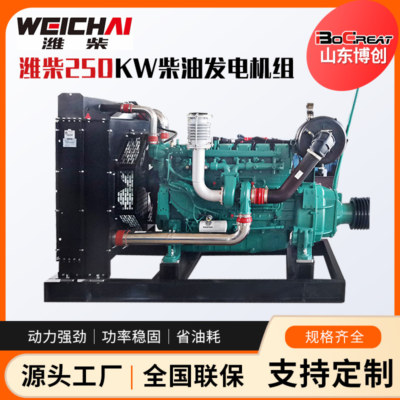 Bochuang Weichai 250KW 固定力発電機建設現場スペアディーゼルエンジン Weichai ディーゼル発電機セット