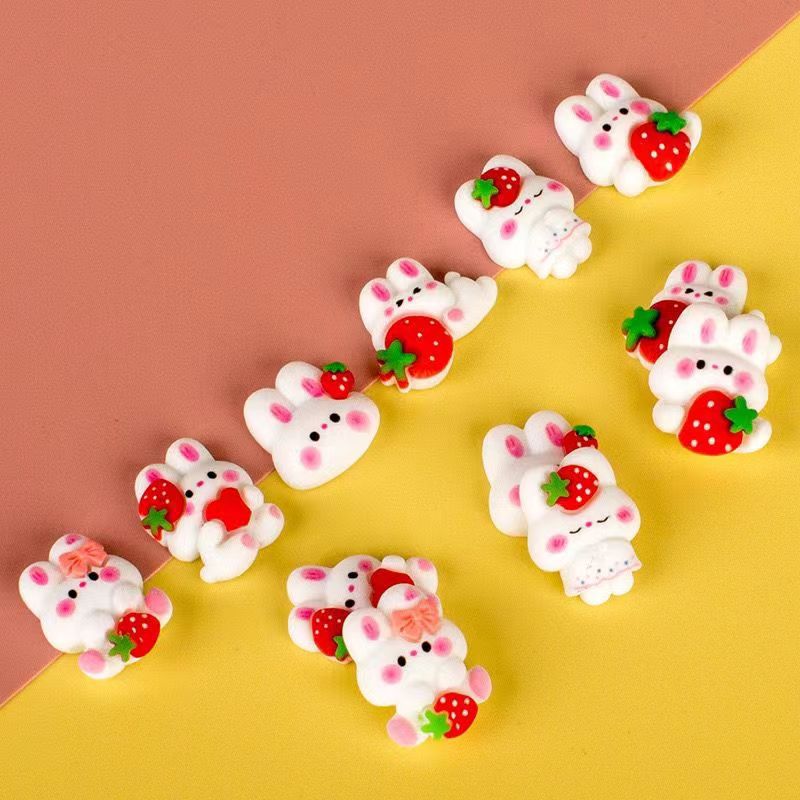 新しいかわいい超萌えいちごウサギ漫画人形樹脂アクセサリーdiyヘアピン髪飾り携帯ケースシール