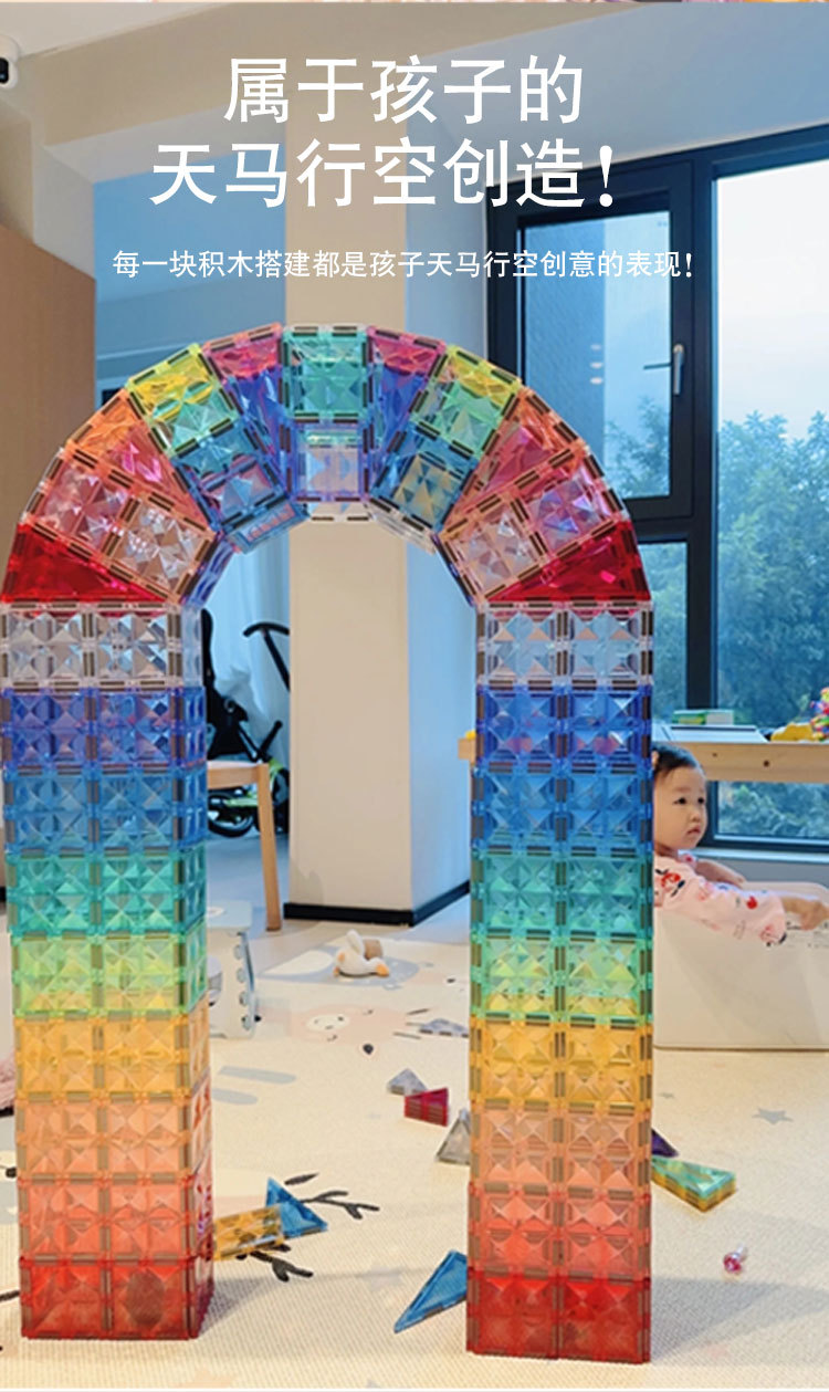 子供用大型カラー窓磁力片100枚観覧車磁気結合磁気吸引積み木百変磁気益智