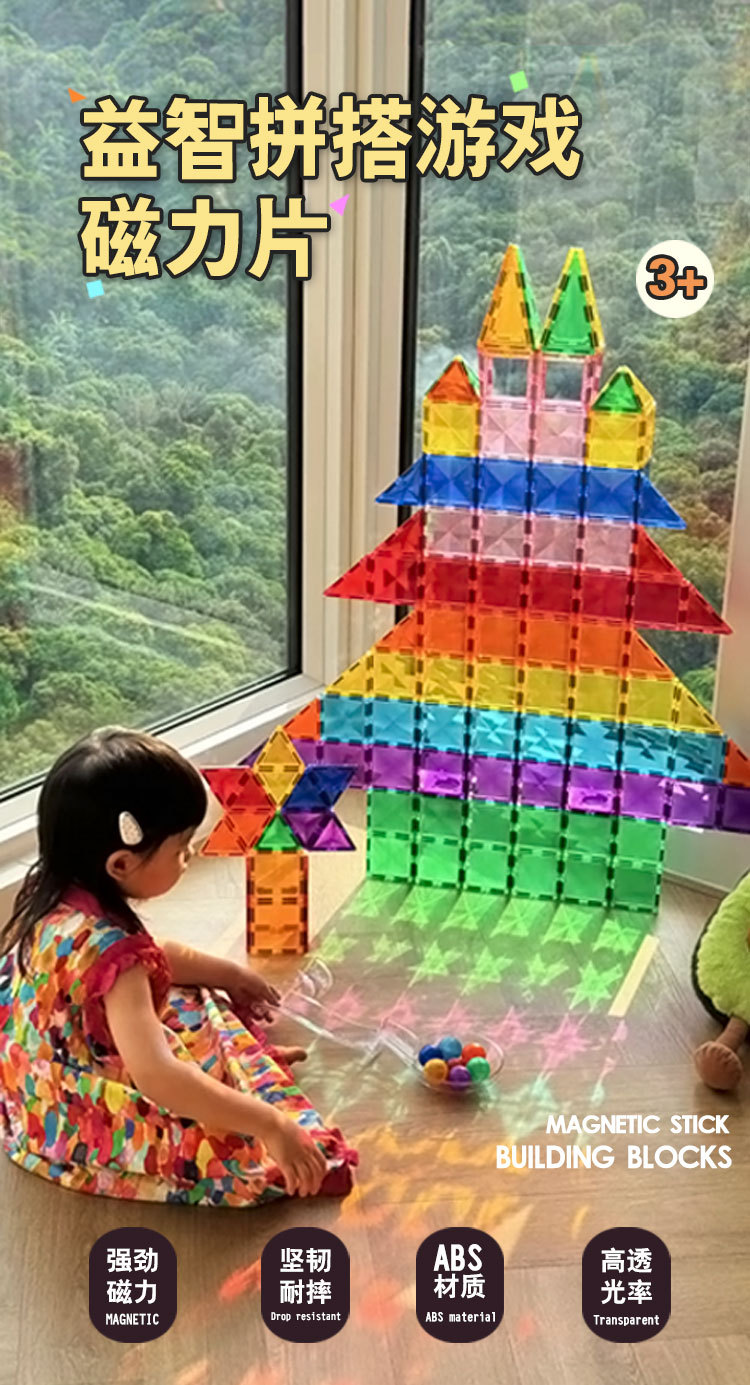 現物大サイズ7.5cm磁力片彩窓児童知育玩具強磁気彩窓積み木玩具セット卸売り