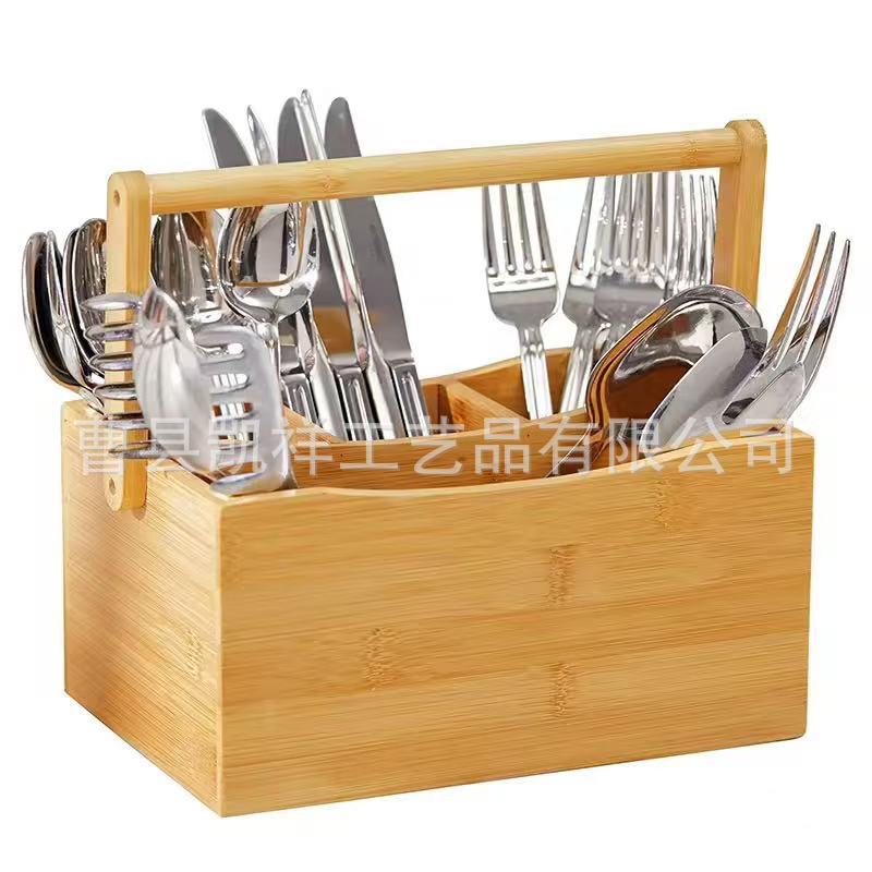 木製食器収納ボックス、家庭用キッチンデスクトップ整理ボックス、ポータブル竹多機能収納バケツ