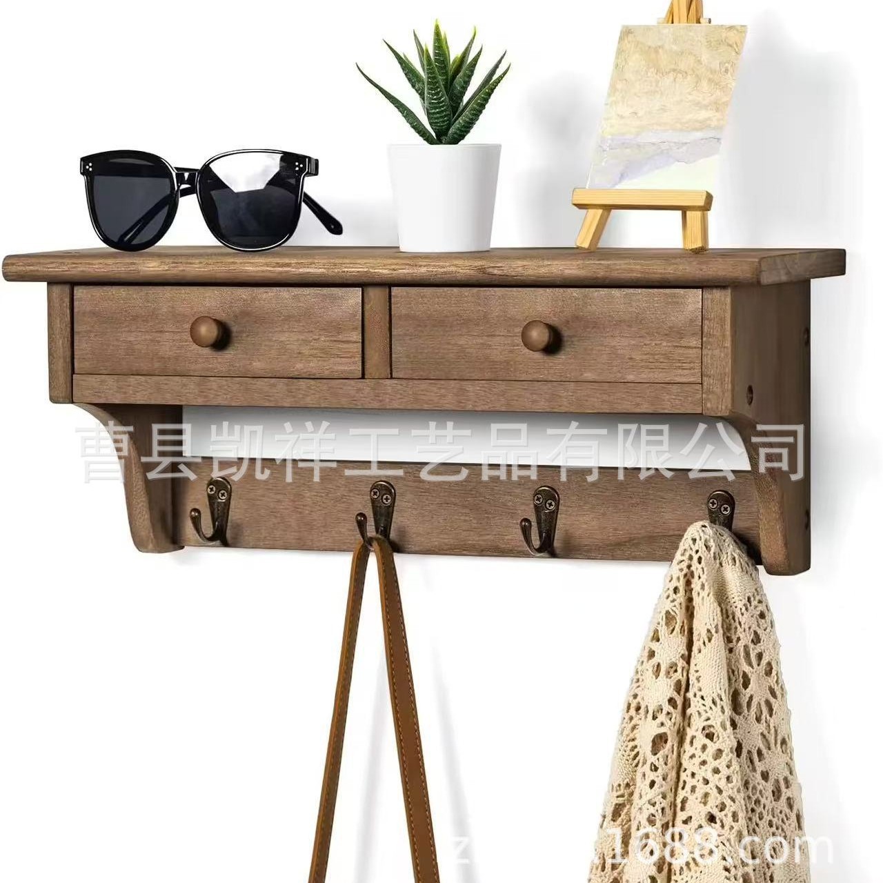 クリエイティブな木製の壁の棚壁掛けコートラック木製の寝室のフックドアの後ろの洋服ラック衣類収納ラック