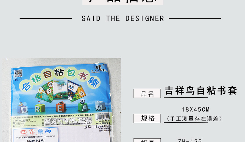 吉祥鳥本カバー小中学生自粘包本カバー環境保護無毒粘着フィルム32k16ka4通用