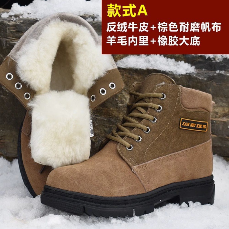 東北マイナス40度厚手の毛皮一体型ウールメンズブーツミリタリーブーツ牛革暖かい綿靴マーティンブーツスノーブーツ