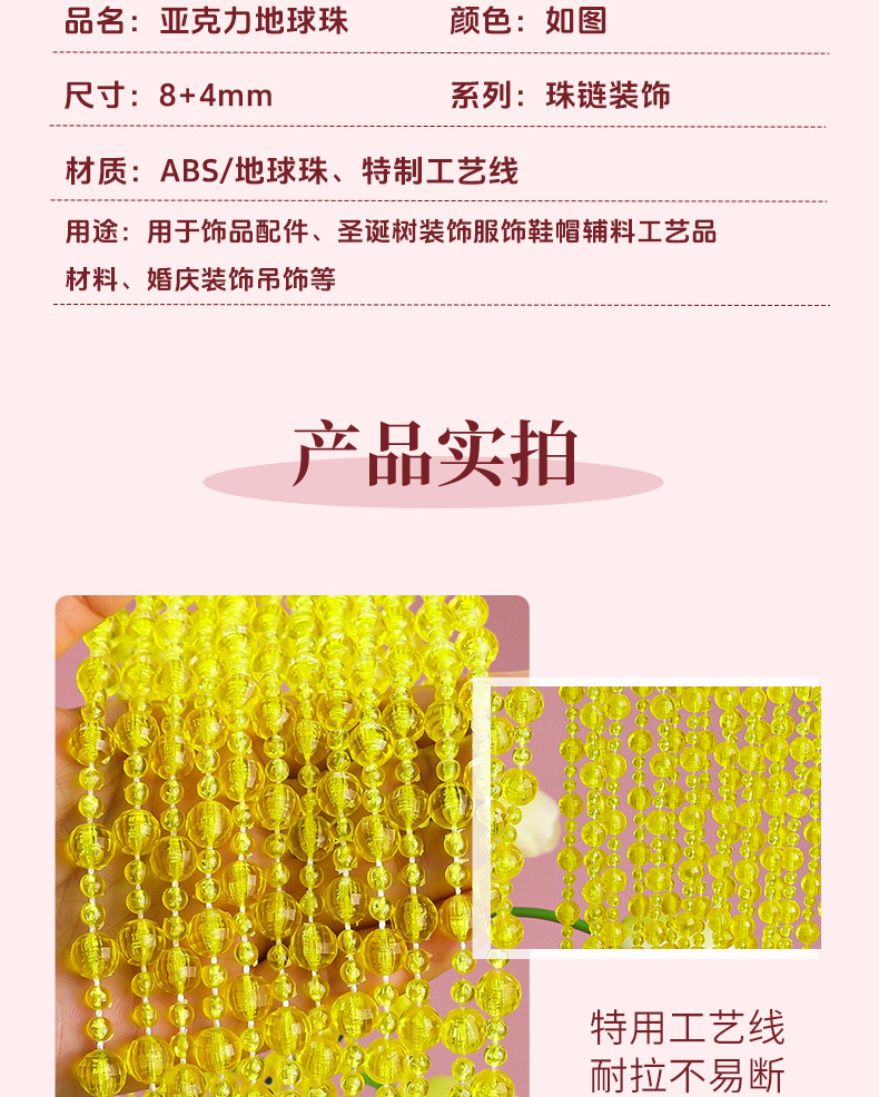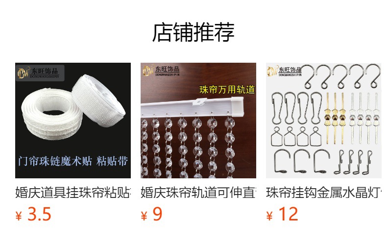 結婚式やお祭りの装飾用品、ビーズカーテン、ドアカーテン、ワイヤーカーテン、装飾材料、衣料品材料など。