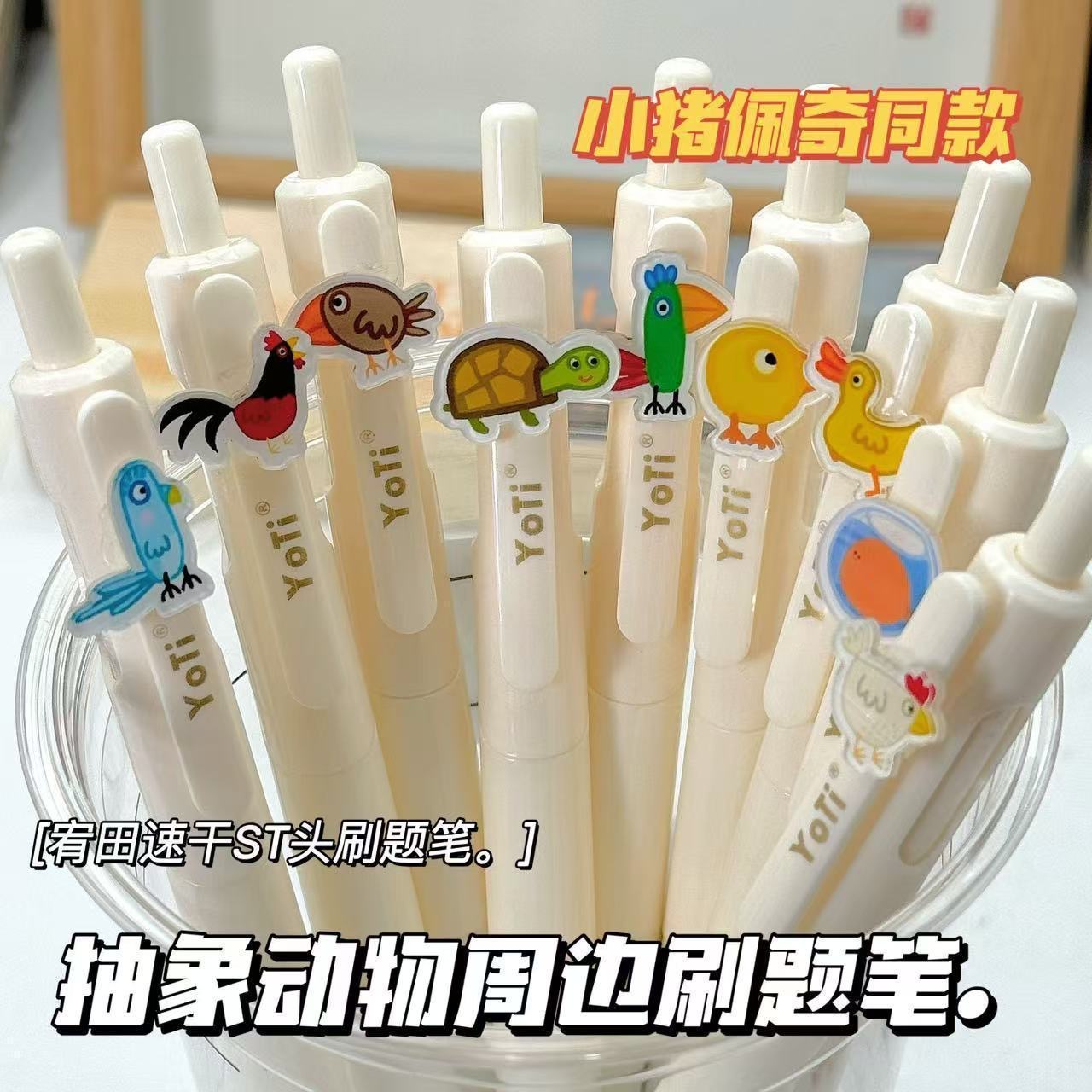 コブタのペイジ同金周辺押しペンinsアニメかわいい学生ブラシ問題速乾試験ST頭黒ペン0.5