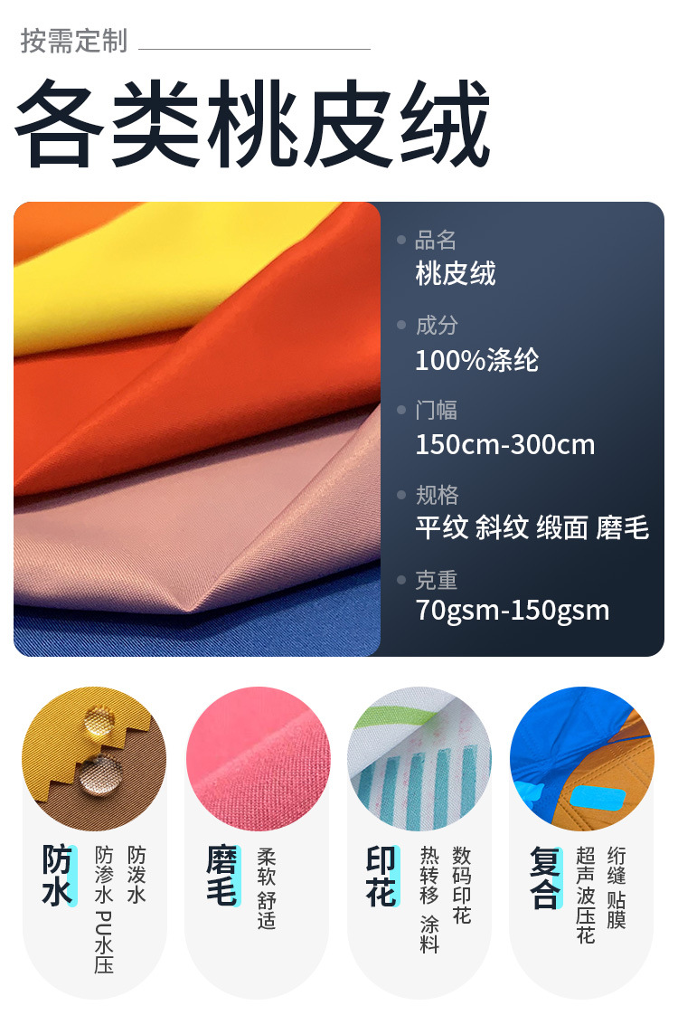 多色涤纶磨毛布桃皮绒平桃130克面料涂层面料数码印花桃皮绒面料