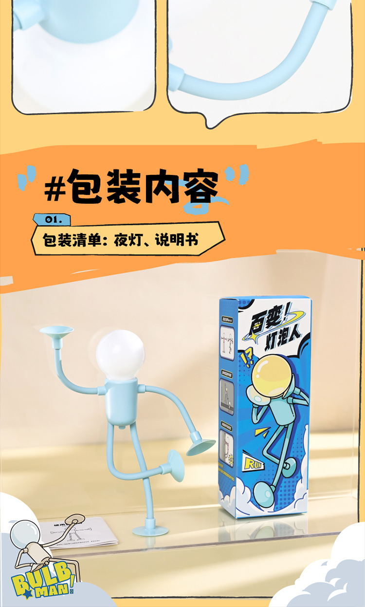 跨境新款灯泡人小夜灯创意吸盘桌面摆件礼品装饰台灯学生护眼书灯