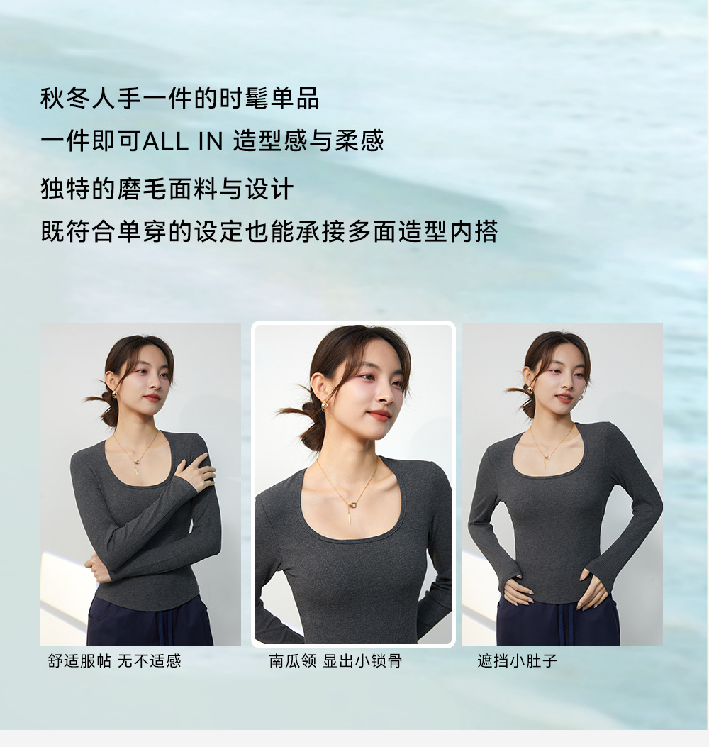 2023秋の新型デコルテ発熱無痕保温下着女性長袖とベルベットの厚い修身がやせている上着