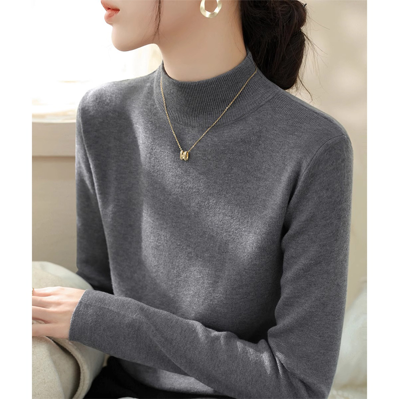 灰色半高领打底衫女春秋高级感不起球毛衣洋气内搭长袖针织衫上衣