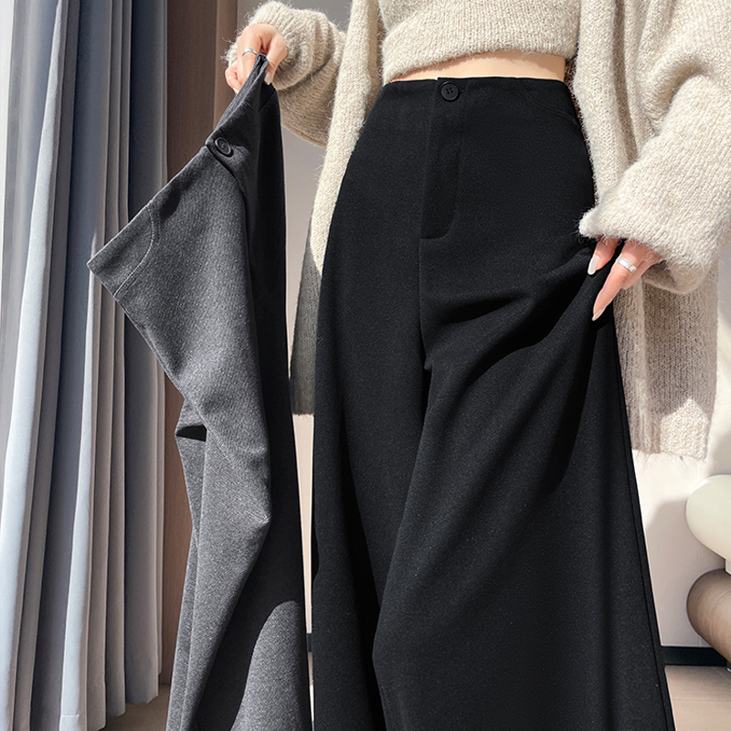 毛呢阔腿裤女冬2025新款高腰显瘦直筒裤休闲百搭拖地裤长裤西装裤