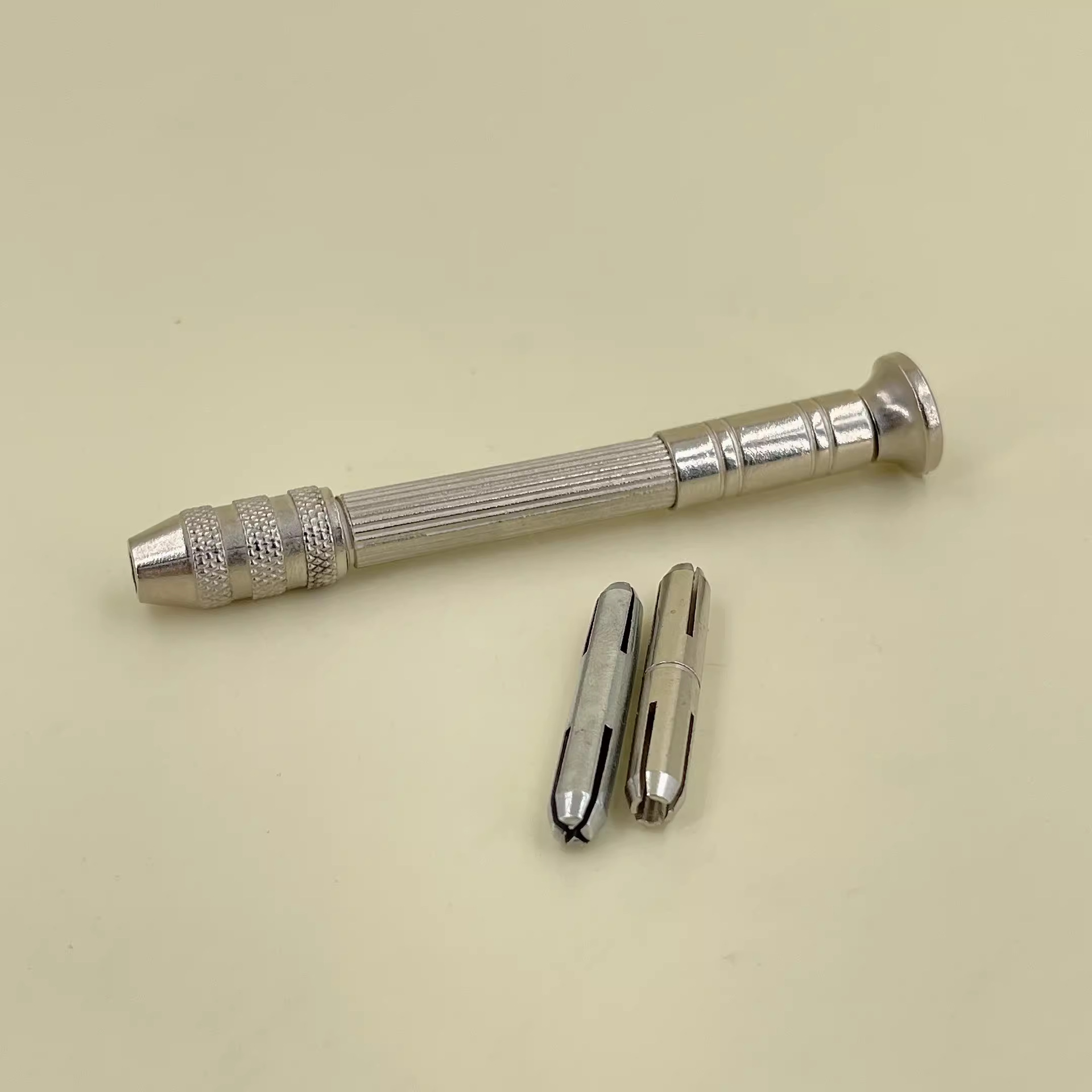 手撚りドリルの持ち手の穴あけ器の穴を開けてドリルを広げます。