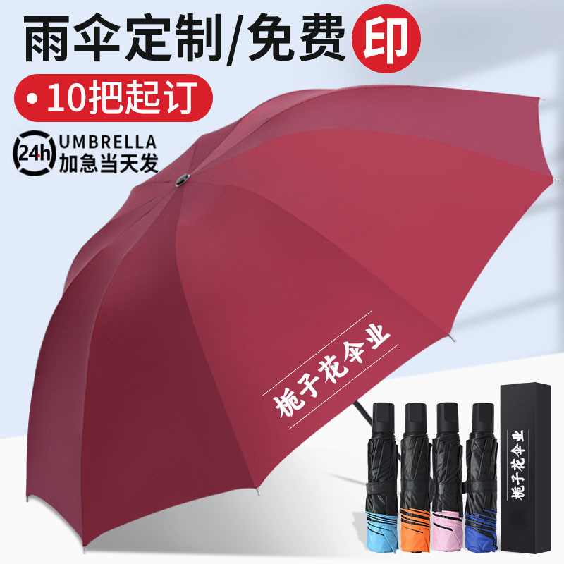 10骨手動三つ折り折り畳み傘晴雨両用日除け傘大サイズ日焼け止めビジネス広告傘傘マーク