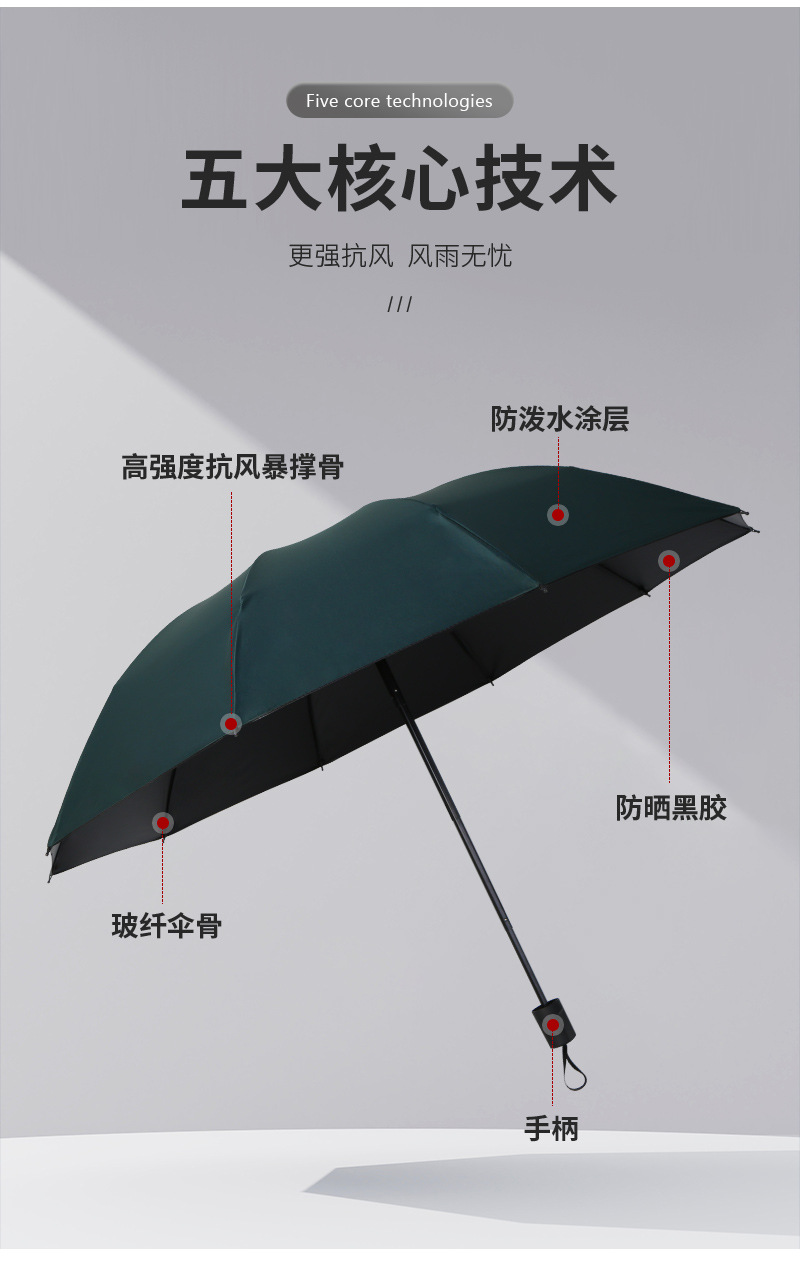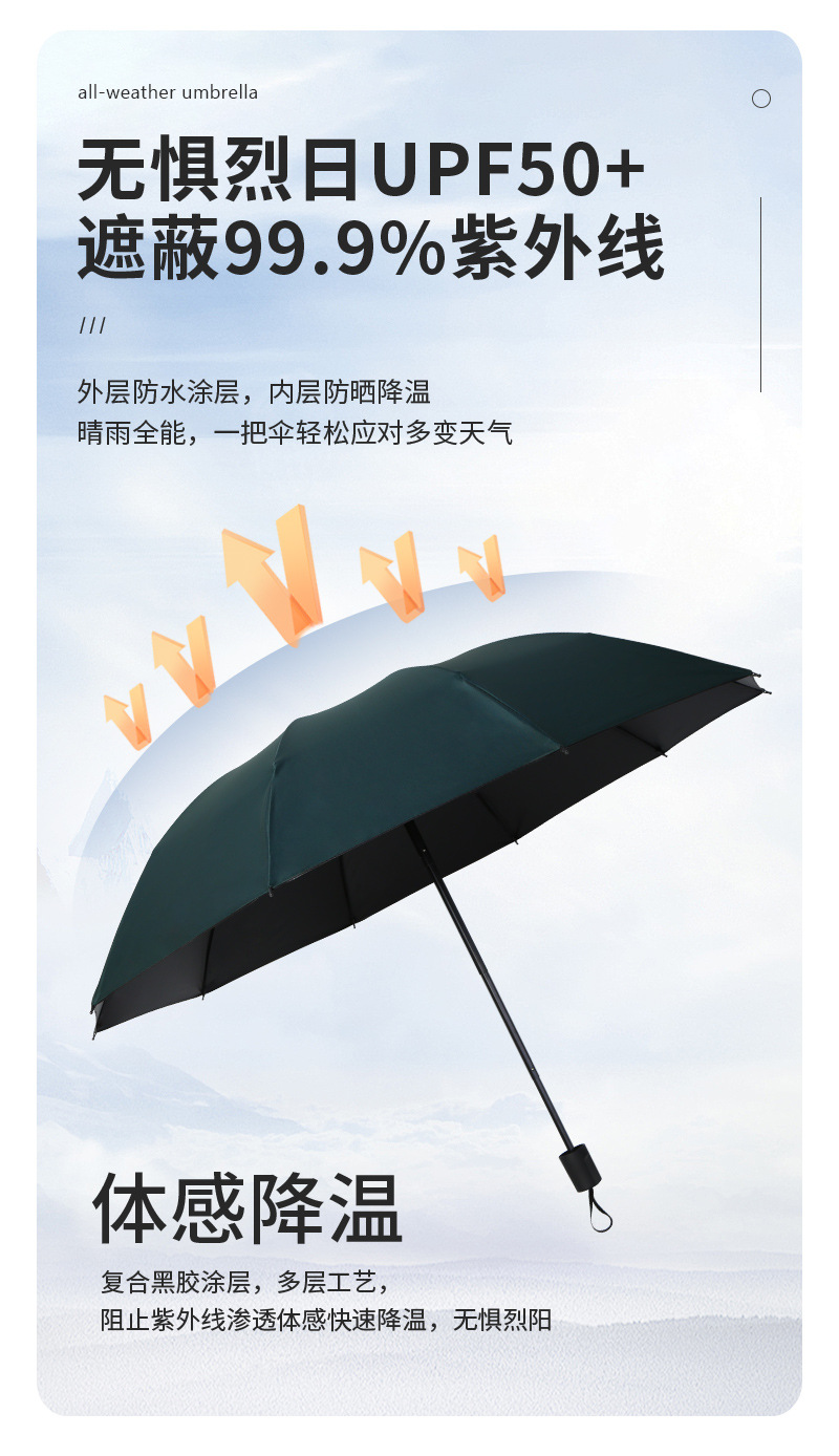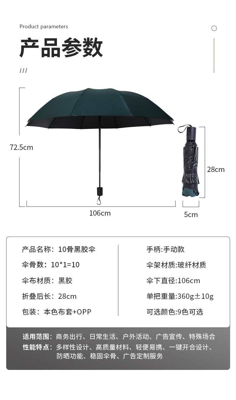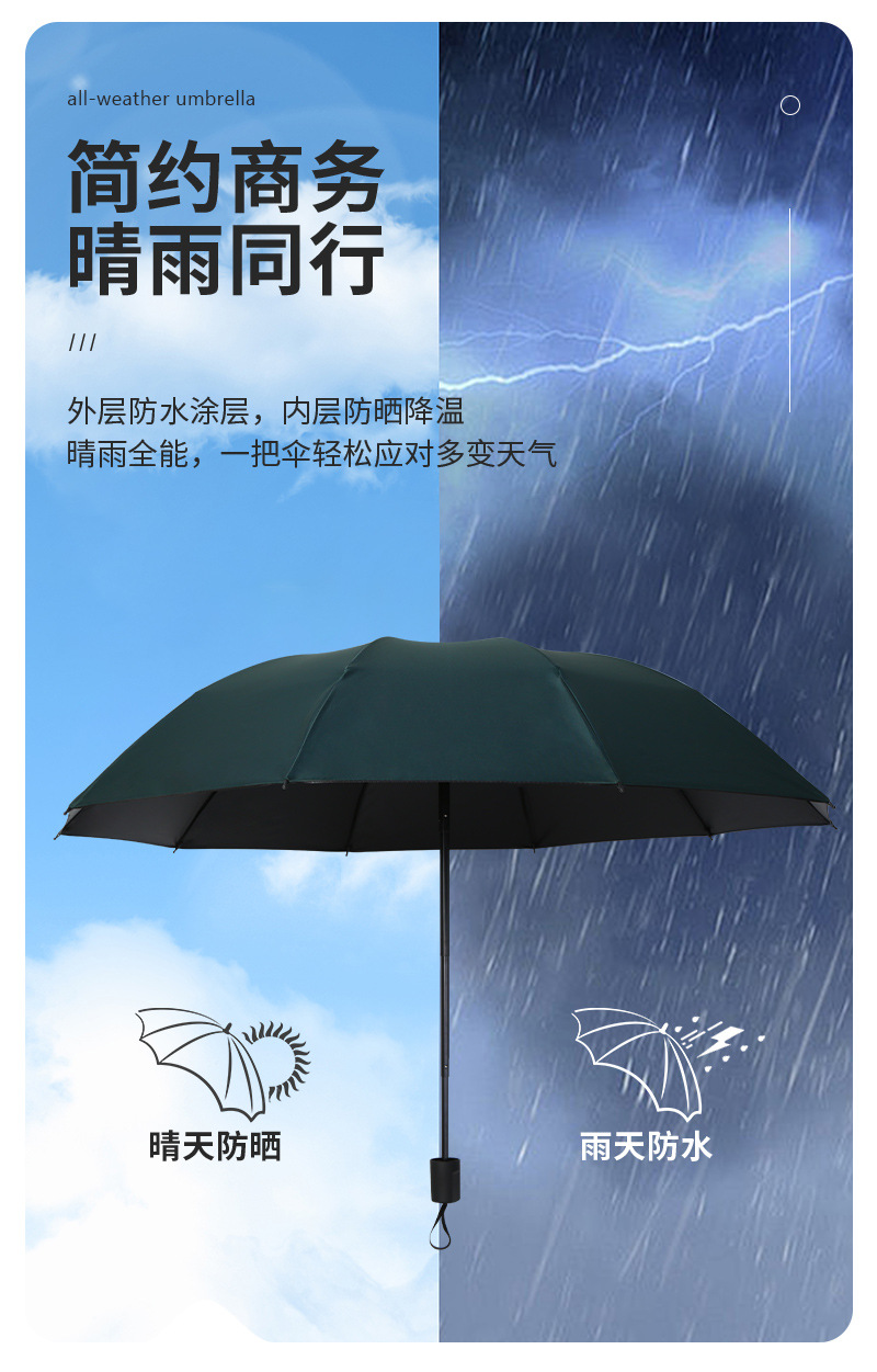 ビジネス広告傘カスタム傘紫外線対策晴れ雨両用日除け傘クラシック10骨三つ折り黒ゴム傘卸売り