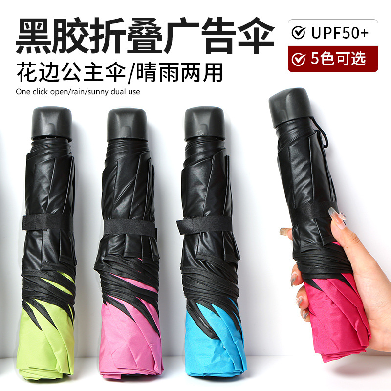 黒ゴムuv日傘晴雨傘紫外線防止日よけ日除け傘女三折り畳み傘定広告傘印ロゴ