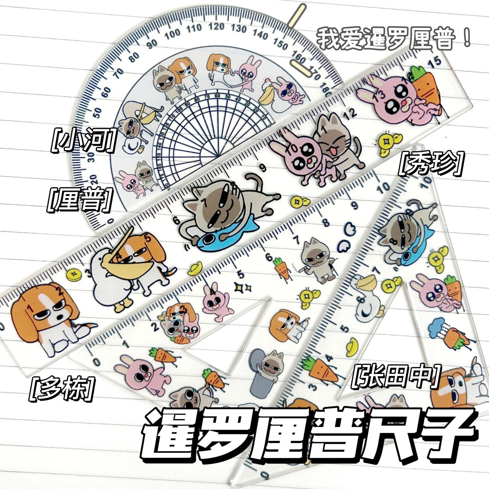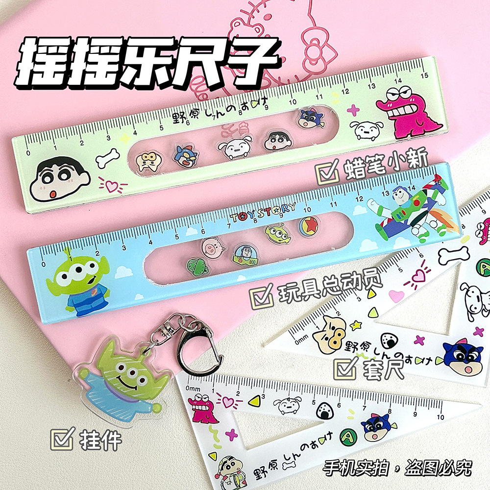 メーカー卸売りアニメかわいいジャケット定規4点セット三角定規直角定規ロッキング定規15cm試験専用