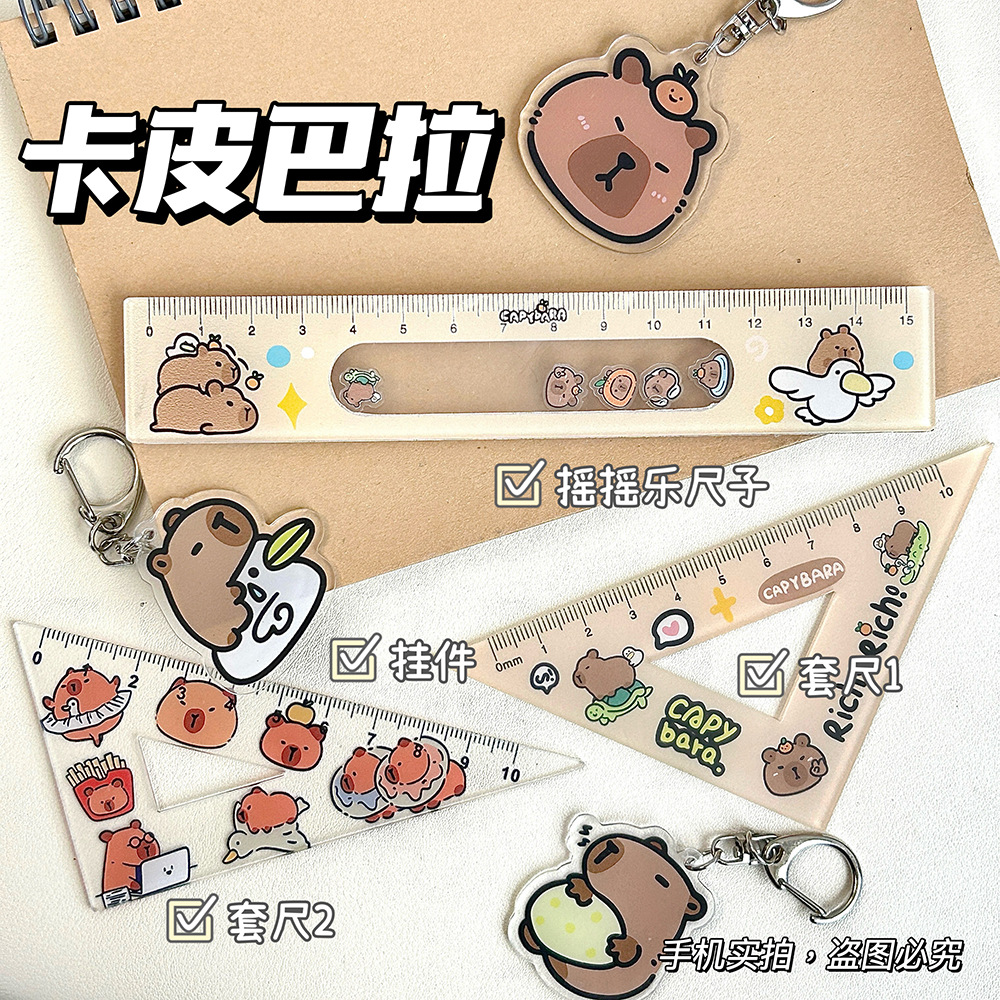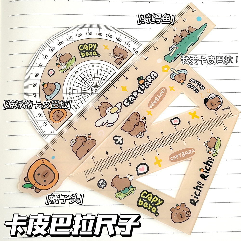 カートゥンカピバラアクリル物差し4点セット目盛り製図測定定規カード直尺三角学生文房具
