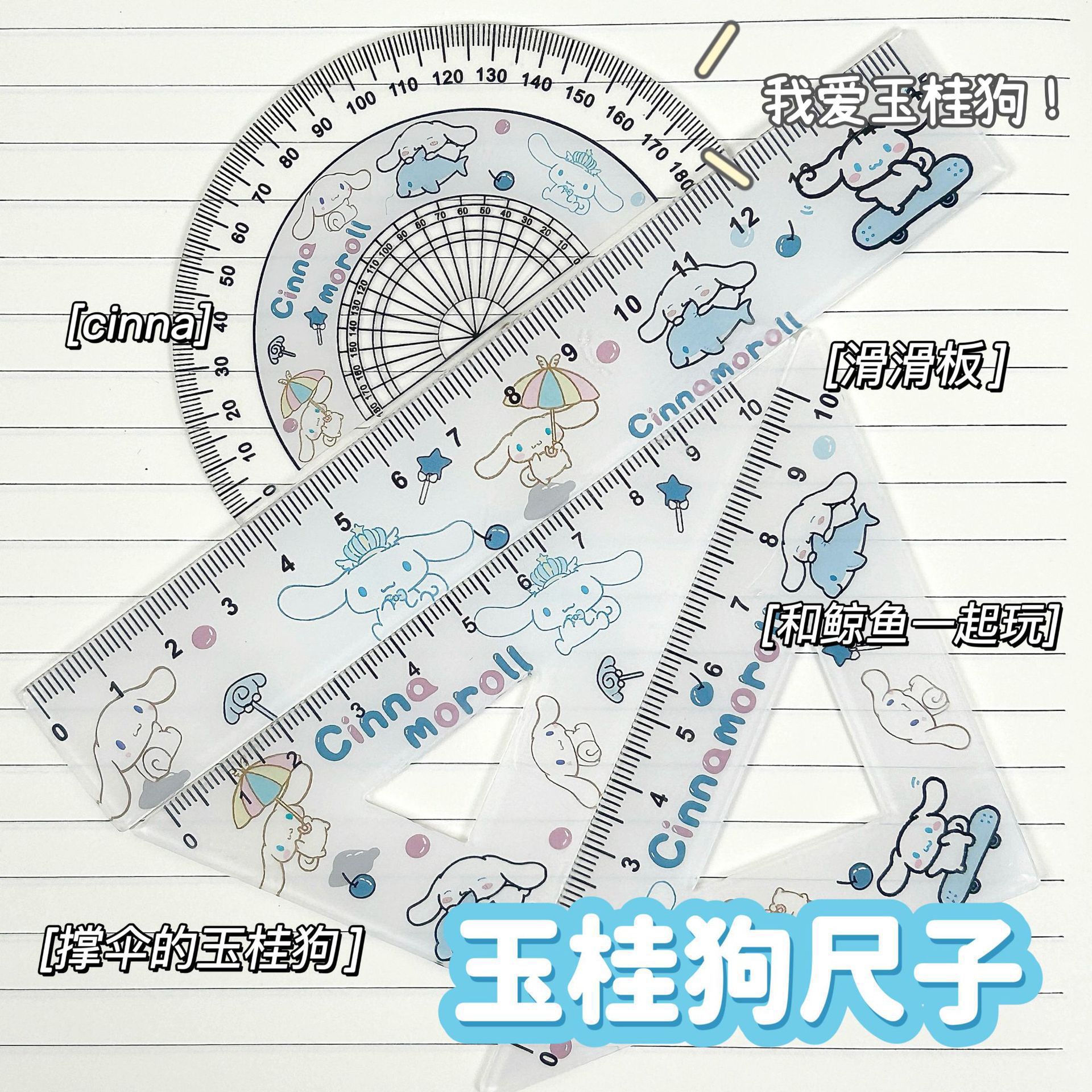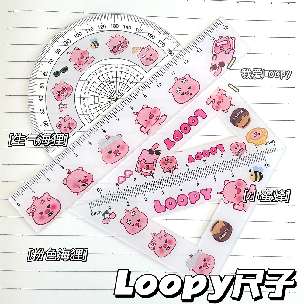 卡通三丽鸥透明尺子四件套ins学生测绘精准刻度直尺三角板量角器