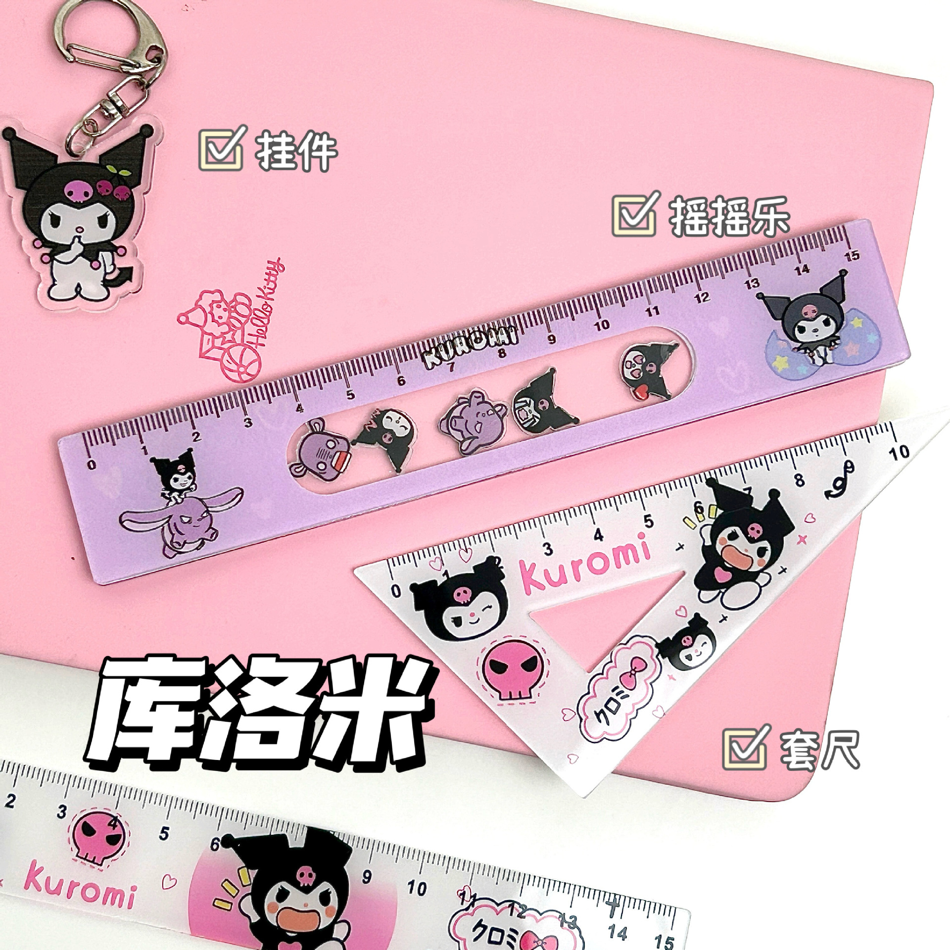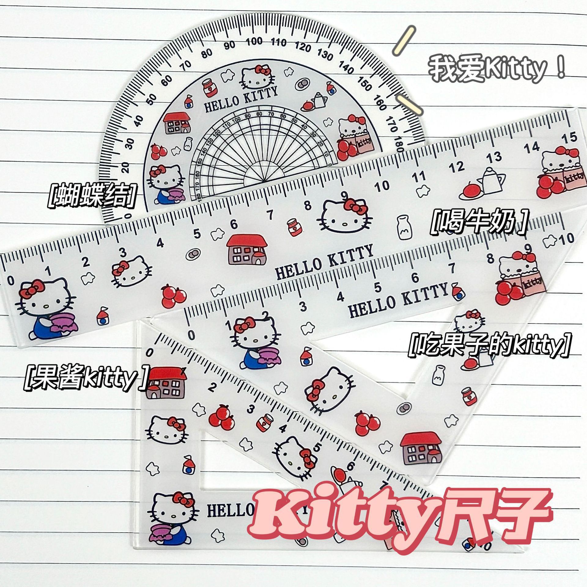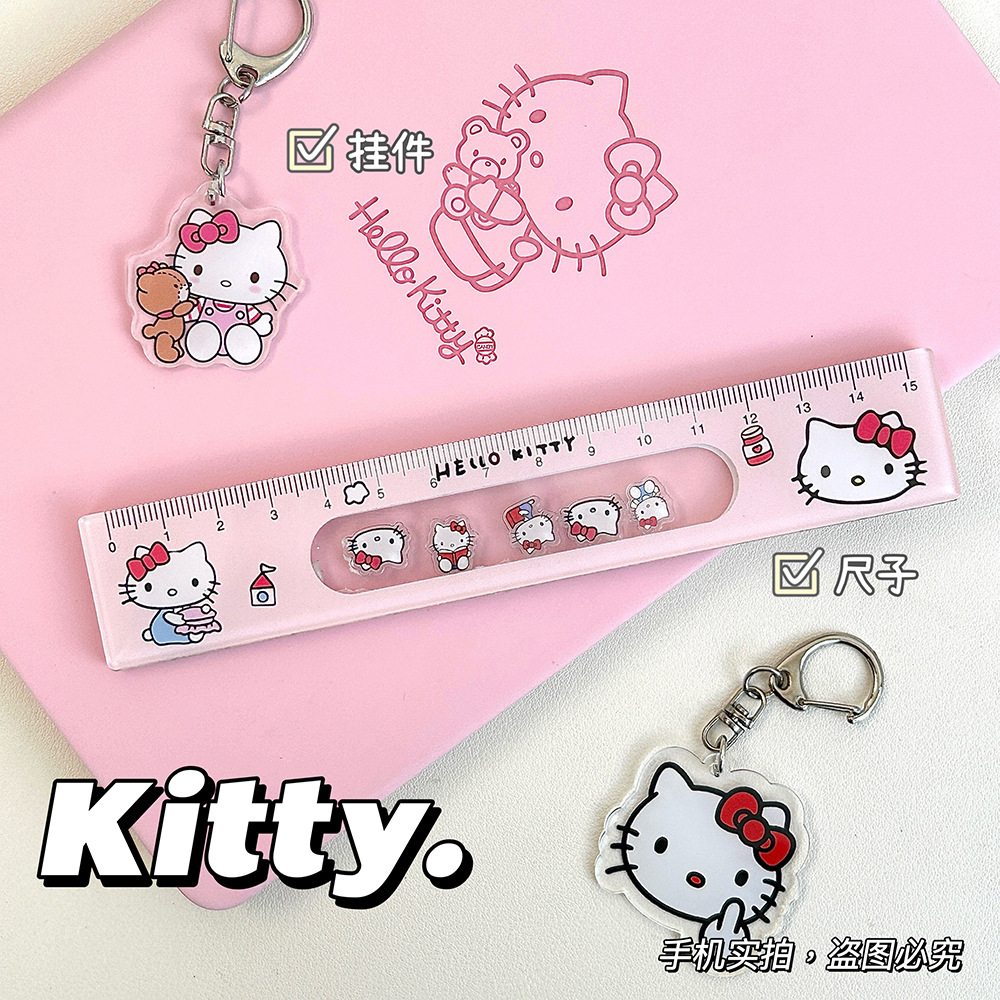かわいいサンリオkt猫ロック直尺学生15cm高颜値漫画絵画アクリル両面物差し