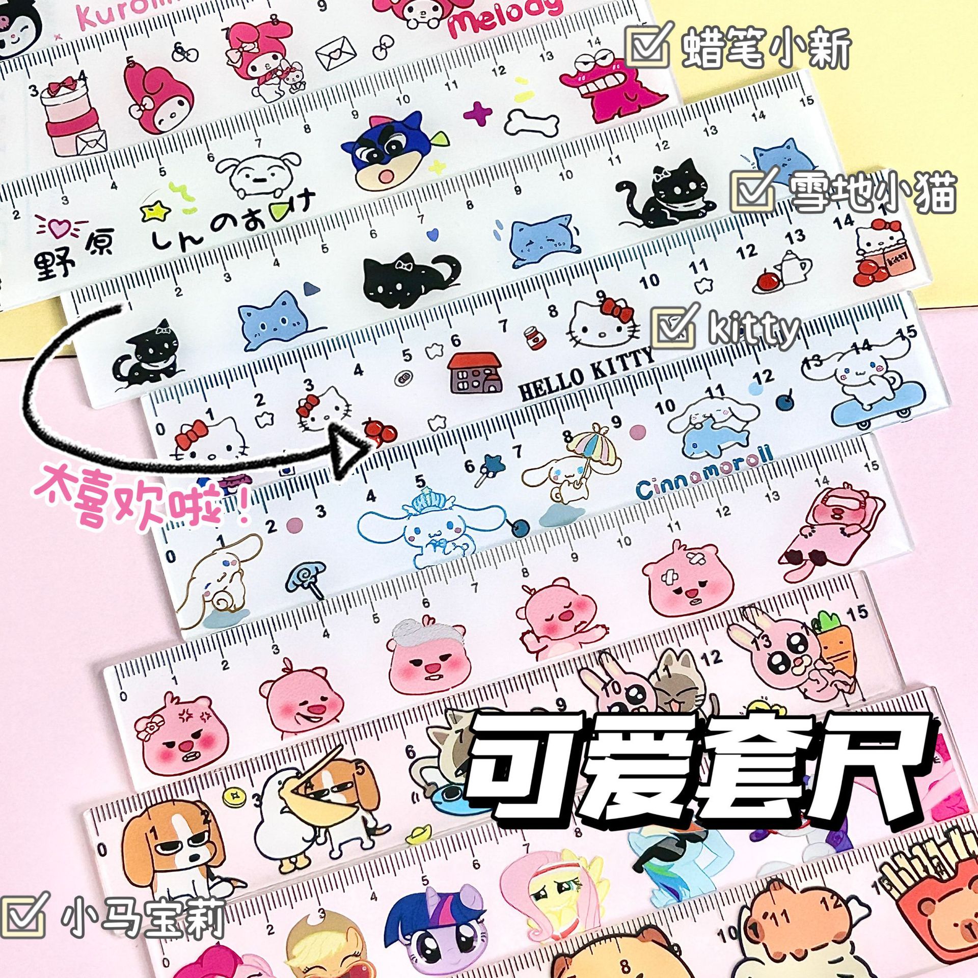 サンリオロック物差しかわいいkt猫ビーバー物差しアクリル学生15cm直尺文房具