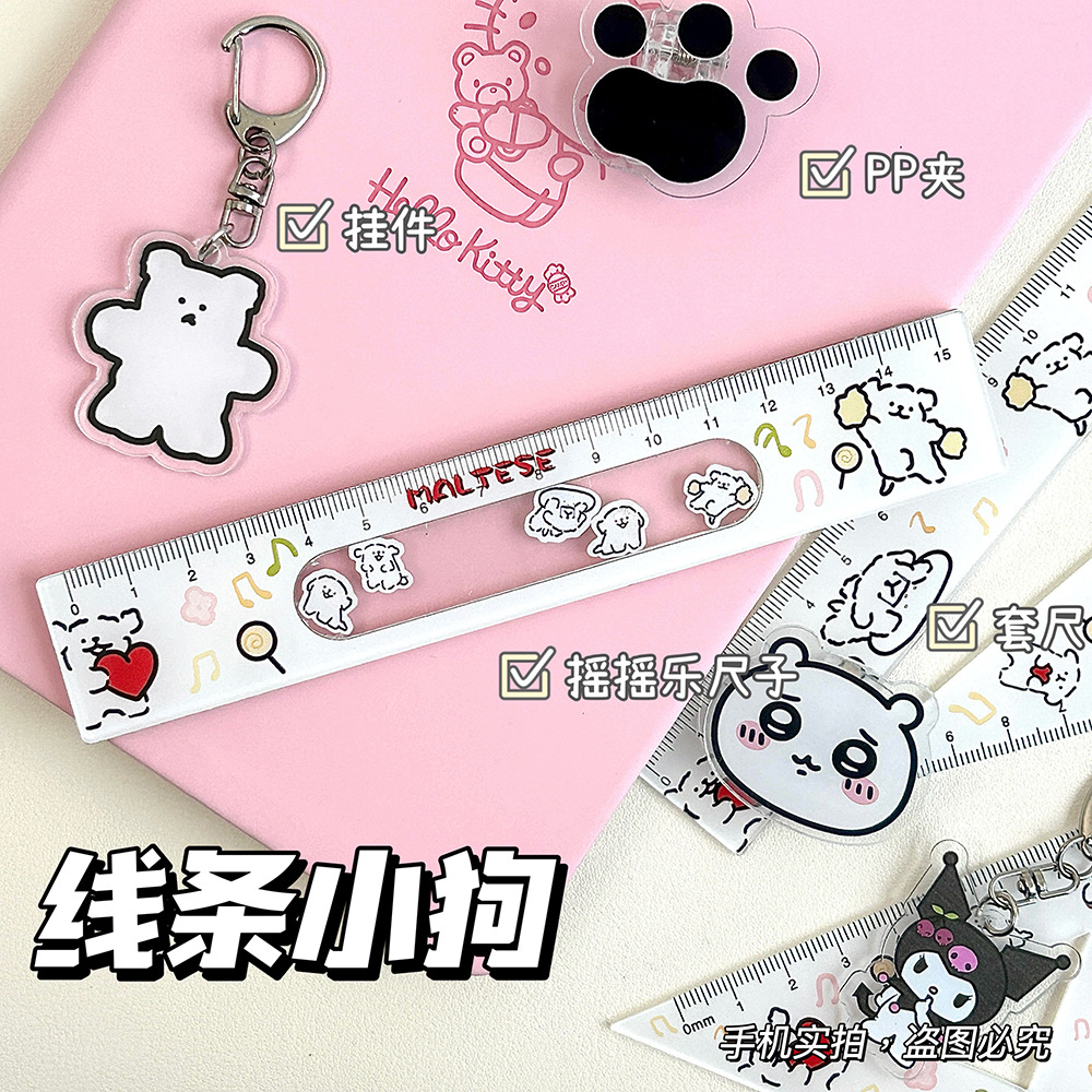 新しいかわいいライン子犬のロック物差し学生文房具高颜値直尺15cm両面厚尺